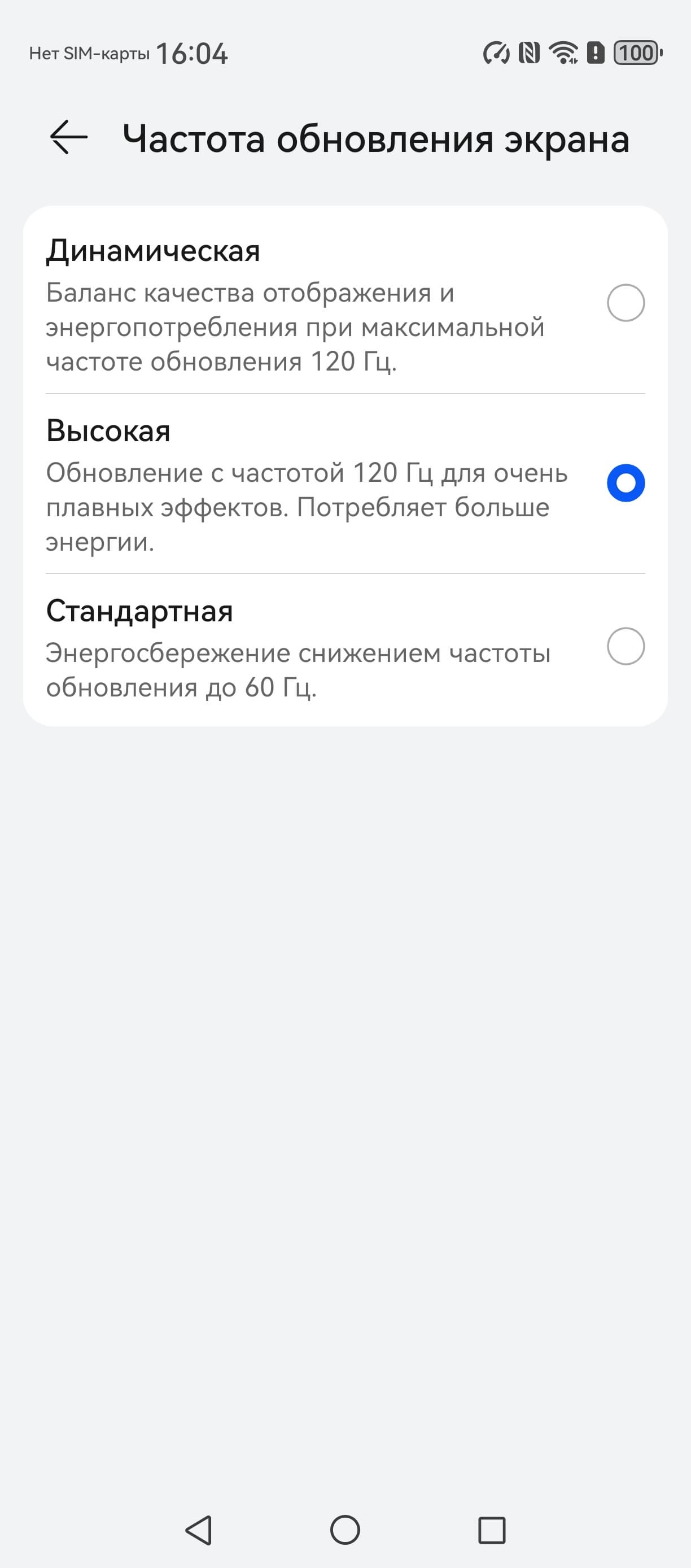 В настройках экрана можно включить режим с повышенной до 120 Гц частотой обновления: