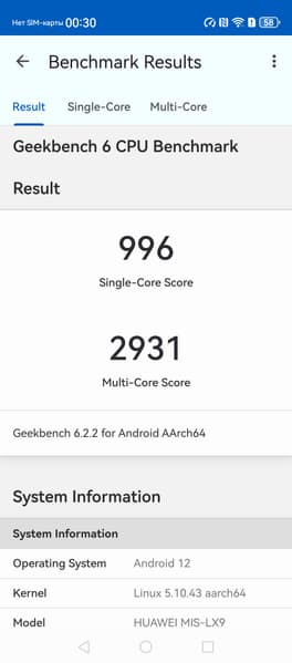 Платформа совсем свежая, изготовляется по 7-нанометровому техпроцессу, но это SoC в лучшем случае среднего уровня, она набирает в AnTuTu немногим более 600 тысяч баллов. Такой производительности смартфону вполне хватает для выполнения любых задач и для плавной работы интерфейса, и даже в игры можно поиграть, пусть и не на самых высоких настойках графики. Однако съемку видео в 4К@60 fps этот смартфон, видимо, не тянет.