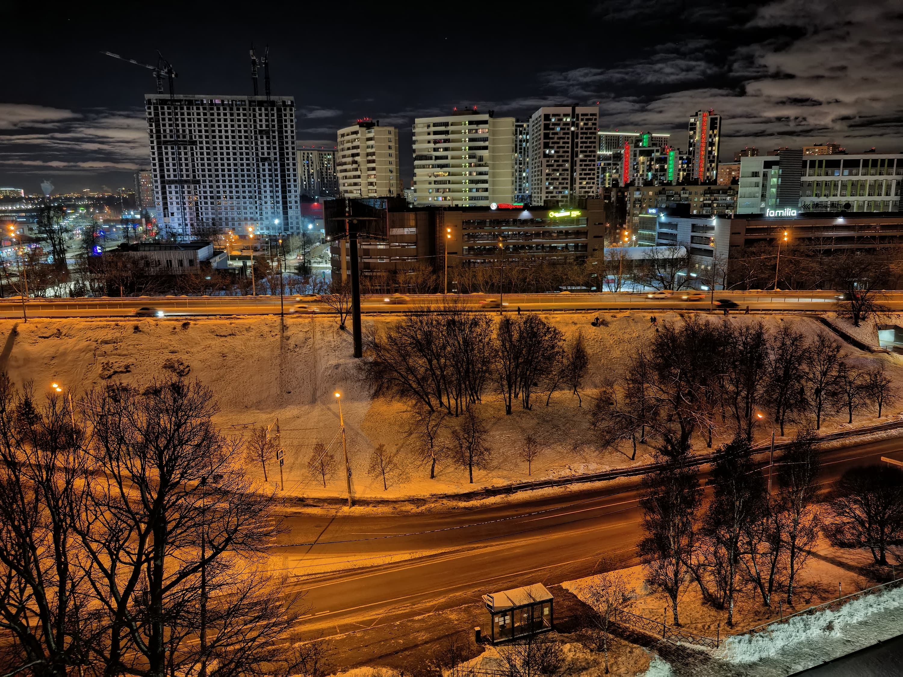 Ночной режим значительно более «темный», чем мы привыкли видеть. Здесь уже заметны и шумы, и артефакты от их подавления, но в целом это не мешает, и если не разглядывать картинку в полный размер, то претензий мало: экспозиция не передержана, картинка смотрится ночной, объемной и четкой.