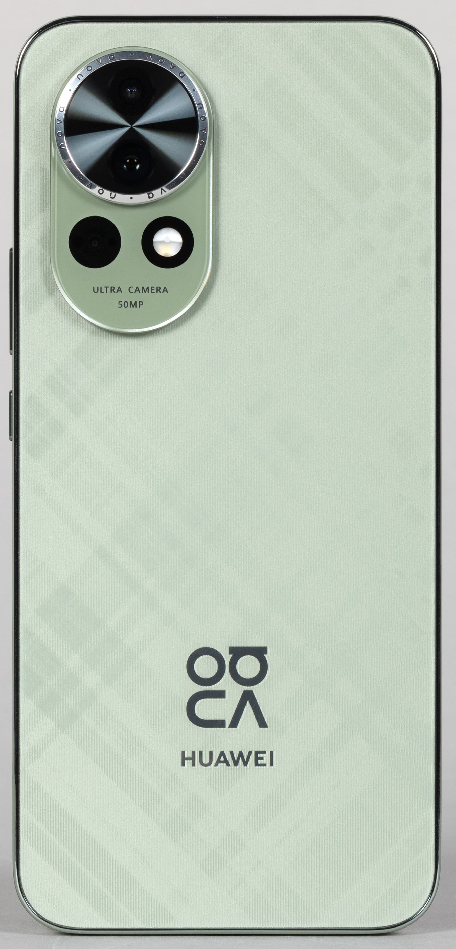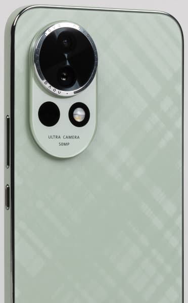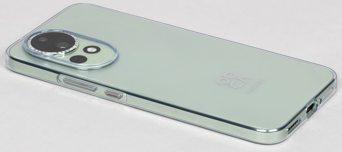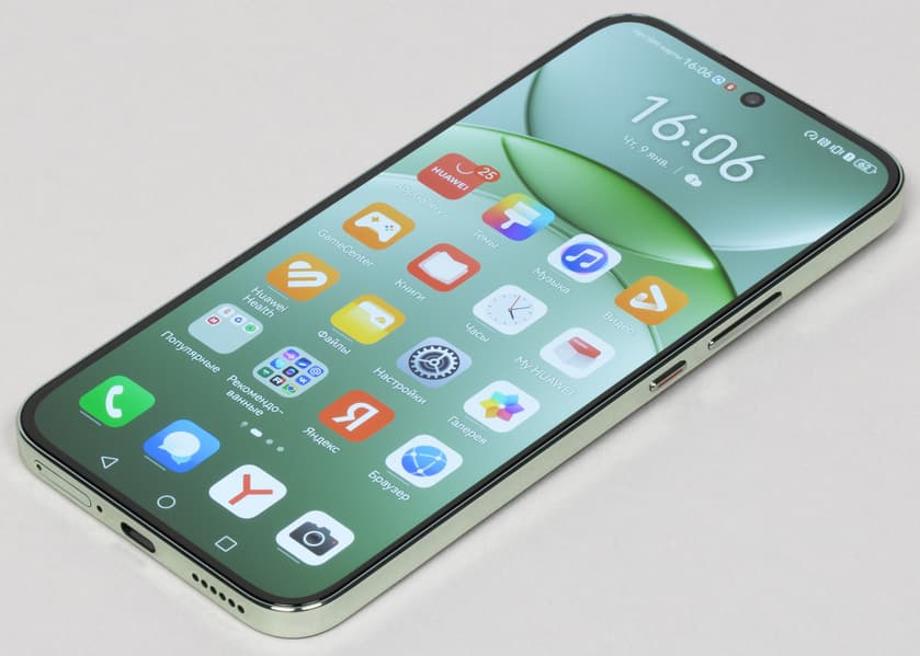 У Huawei nova 13 привлекательный современный дизайн, удачно сочетающий отсутствие скользких зауженных боковин и сильных закруглений. Передняя и задняя панели плоские, переходы между гранями отчетливые, но в ладонь при этом не врезаются. Легкий едва заметный геометрический рисунок на задней спинке, напоминающий структуру ткани, добавляет привлекательности.