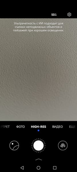 Основная камера имеет адекватный фазовый автофокус, но лишена оптической стабилизации. По умолчанию она выдает снимки в разрешении 12,5 Мп. Можно переключиться и в режим съемки 50 Мп, но никакого выигрыша в детализации этот режим не обеспечивает, так что смысла делать это мы не видим.