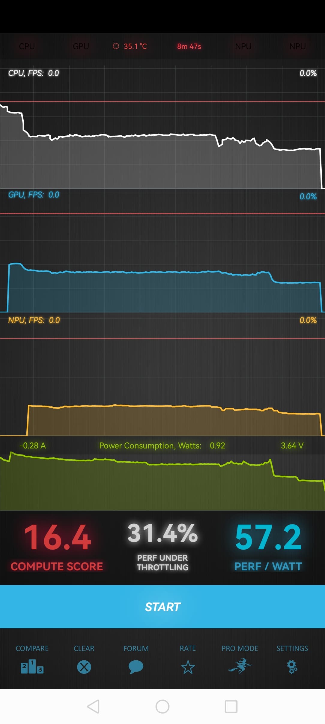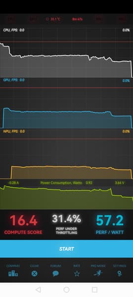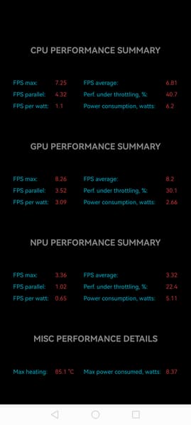 Тест на снижение производительности при нагреве мы проводим с помощью программы Burnout Benchmark, которая позволяет нагружать CPU, GPU и NPU:
