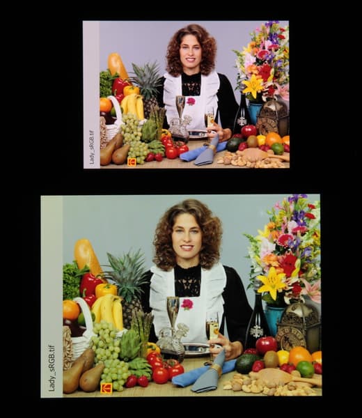 Отметим, что на экранах с уширенным цветовым охватом (без соответствующей коррекции) цвета́ обычных изображений, оптимизированных для устройств sRGB, выглядят неестественно насыщенными. Отсюда и рекомендация: в большинстве случаев смотреть кино, фотографии и все естественное лучше при выборе профиля Обычные цвета. При этом, если в изображении прописан отличный от sRGB профиль, то смотреть его лучше с использованием штатной программы Галерея.