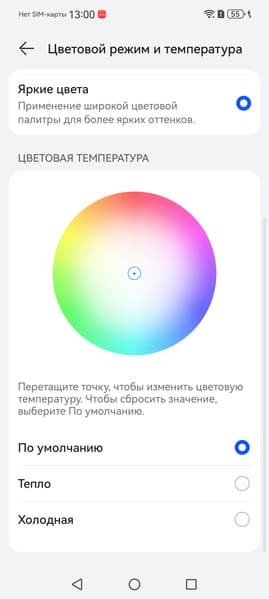 Фотография выше получена при активном профиле Обычные цвета в настройках экрана, всего их два: