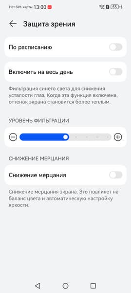 Разумеется есть функция снижения интенсивности синей компоненты. В принципе, яркий свет может приводить к нарушению суточного (циркадного) ритма (см. статью про iPad Pro с дисплеем 9,7 дюйма), но все решается снижением яркости до низкого, но еще комфортного уровня, а искажать цветовой баланс, уменьшая вклад синего, нет абсолютно никакого смысла.
