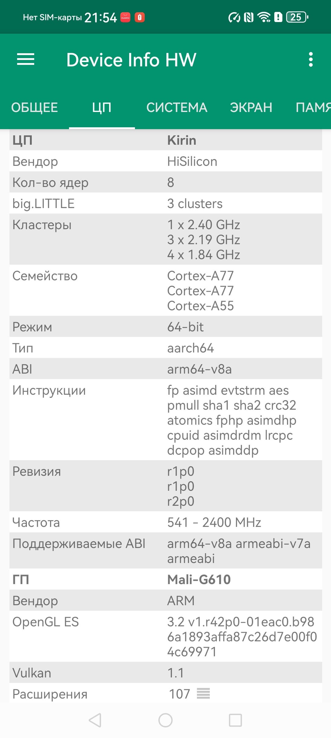 Платформа HiSilicon Kirin 8000 свежая, изготовляется по 7-нанометровому техпроцессу, но в лучшем случае среднеуровневая: аппарат набирает в AnTuTu менее 600 тысяч баллов. Впрочем, и такой производительности смартфону вполне хватает для выполнения основных задач и для плавной работы интерфейса. В игры можно поиграть не на самых высоких настойках графики, но и без откровенных просадок.