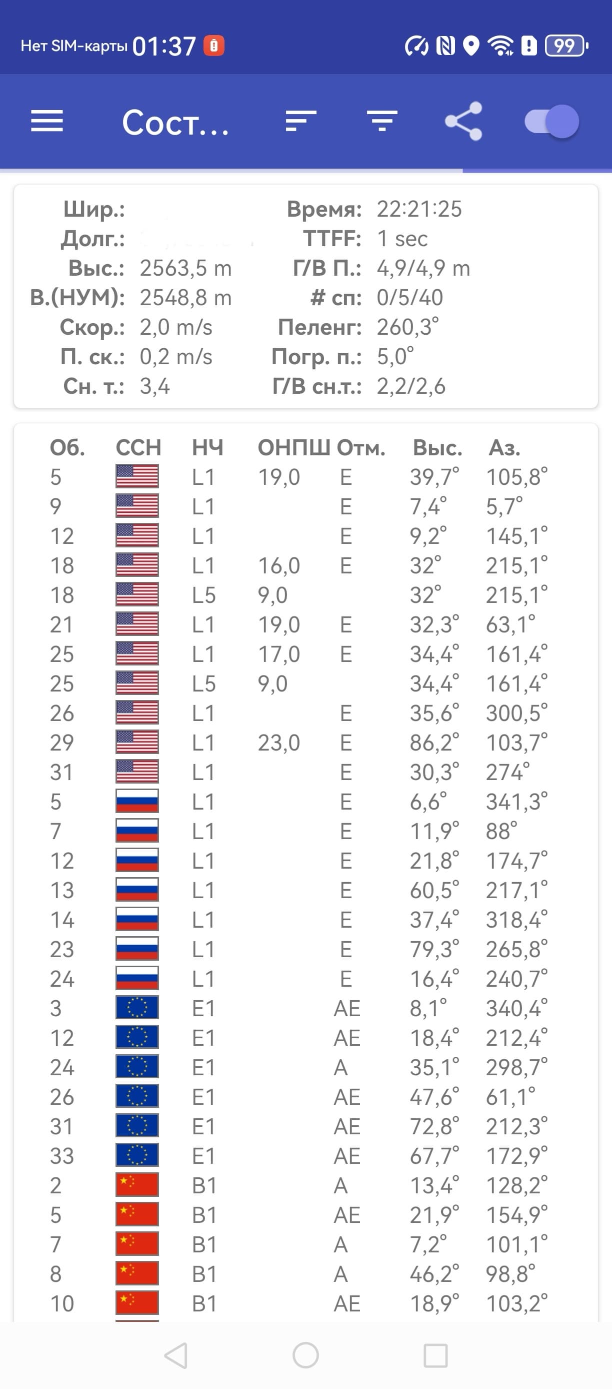 - GPS, Galileo, Глонасс, QZSS, BDS
