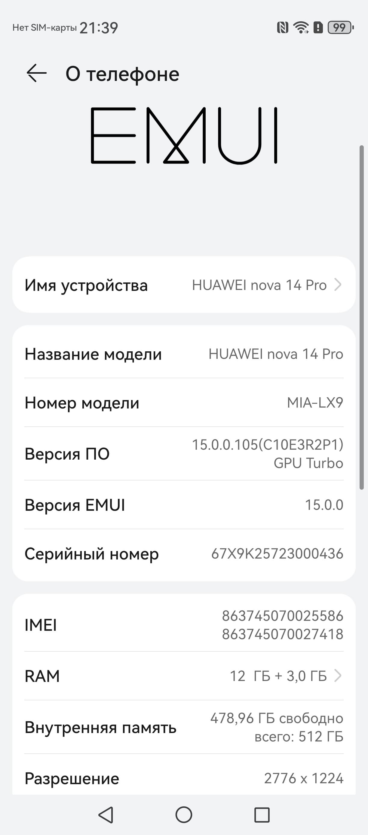 Основные характеристики Huawei nova 14 Pro (модель MIA-LX9)