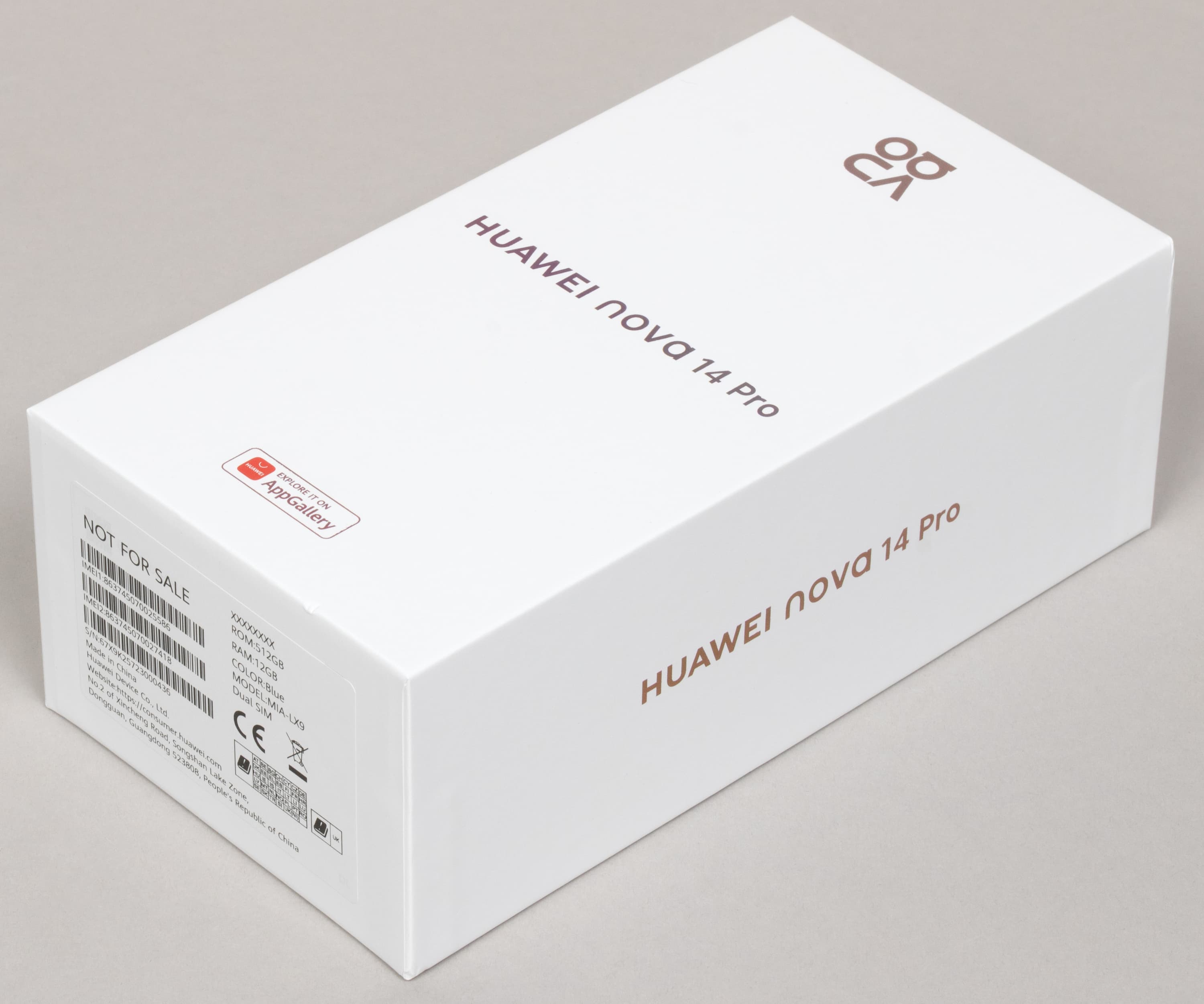 Смартфон Huawei nova 14 Pro поставляется в картонной коробке стандартной формы со спокойным минималистичным оформлением.