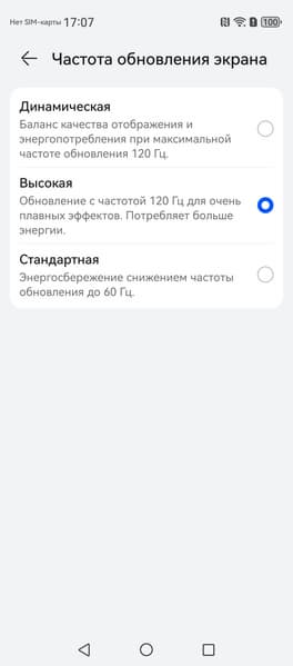В настройках экрана можно включить режим с повышенной до 120 Гц частотой обновления: