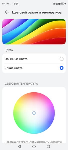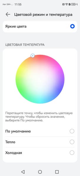 Фотография выше получена при активном профиле Яркие цвета в настройках экрана, всего их два: