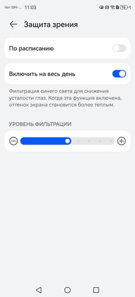 Разумеется есть функция снижения интенсивности синей компоненты.