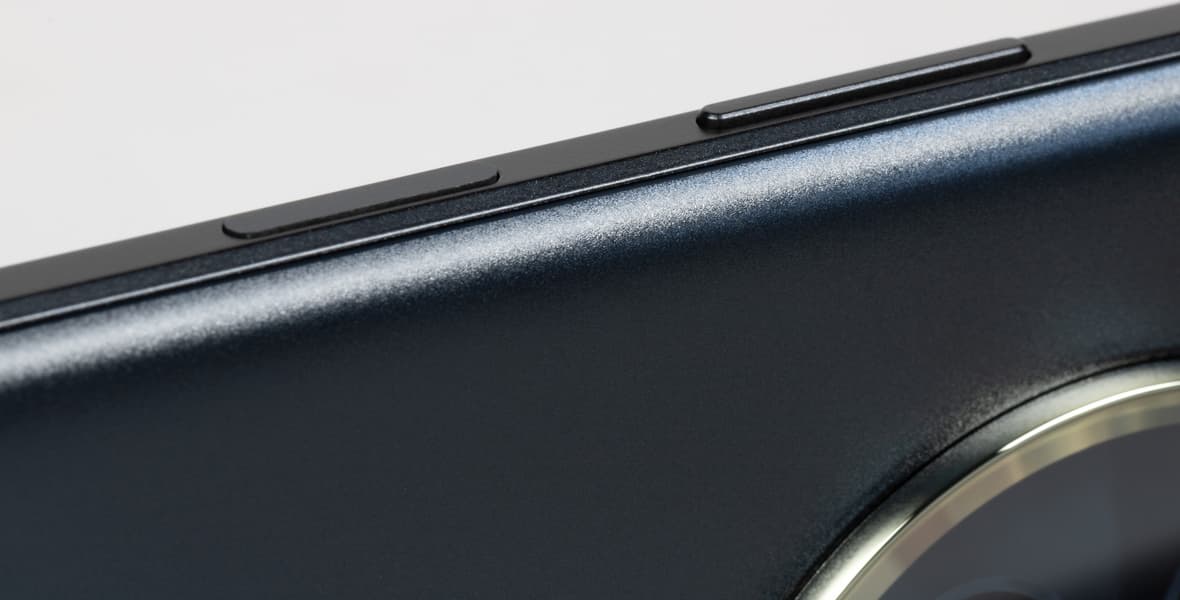 На торце сверху, соответственно, нет ничего, кроме единственного вспомогательного микрофона. Смартфон представлен в двух цветовых решениях (черном и голубом), а его корпус получил лишь легкую защиту от водяных брызг и пыли без подтверждения каким-либо стандартом.