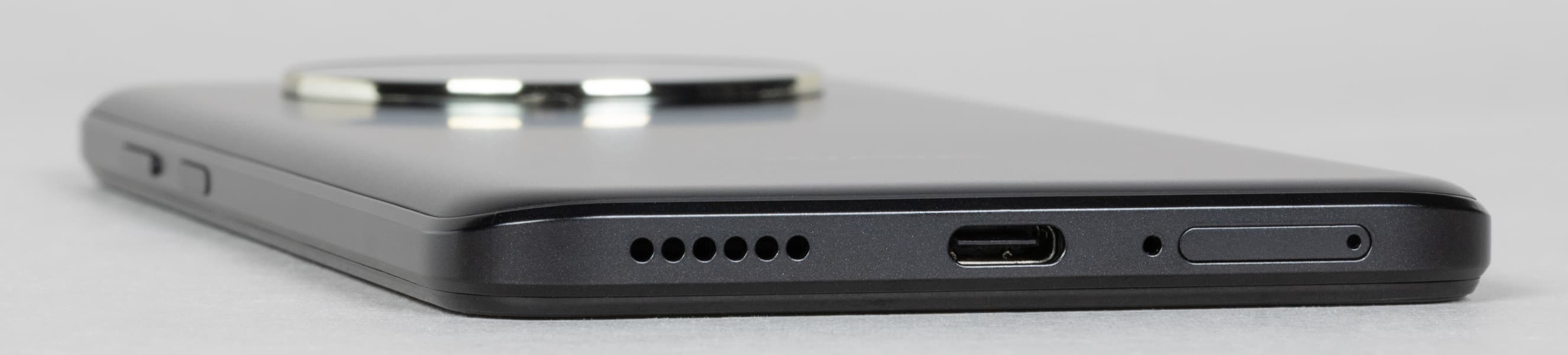 Стереодинамиков тут тоже нет. Внешнее звучание выдает лишь нижний торцевой динамик, и звук довольно простенький. Этот динамик не может похвастать не только чистотой и насыщенностью звука, но даже громкостью. Нижний торец также содержит микрофон и разъем USB Type-C.