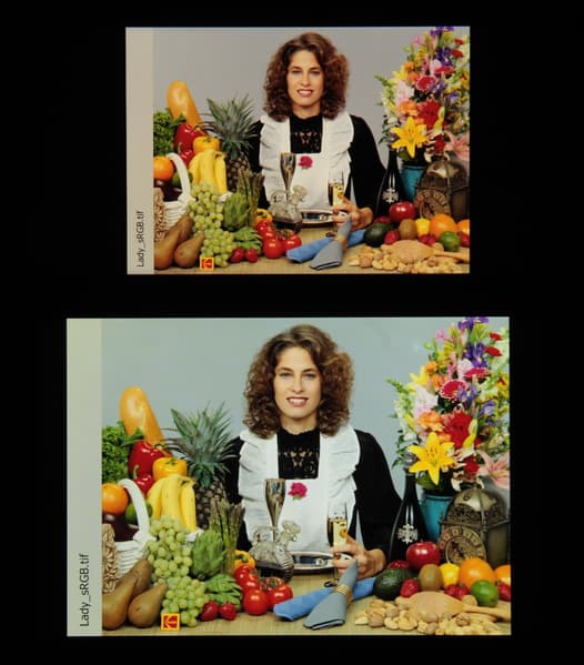 Отметим, что на экранах с широким цветовым охватом (без соответствующей коррекции) цвета́ обычных изображений, оптимизированных для устройств sRGB, выглядят неестественно насыщенными.