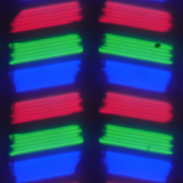 В данном смартфоне используется матрица типа IPS. Микрофотографии демонстрируют типичную для IPS структуру субпикселей: