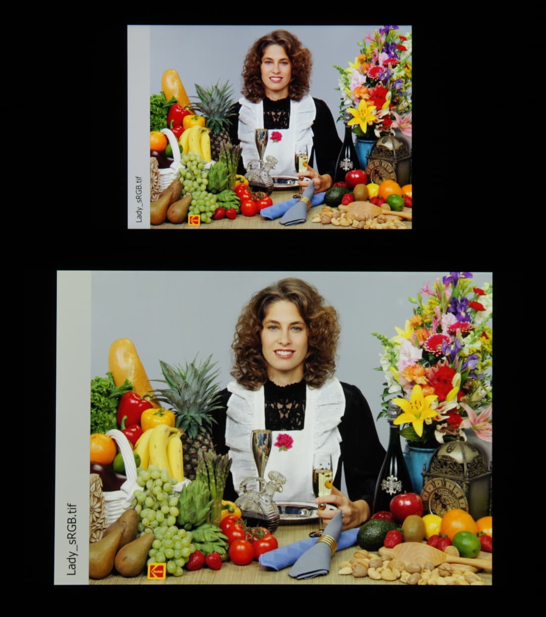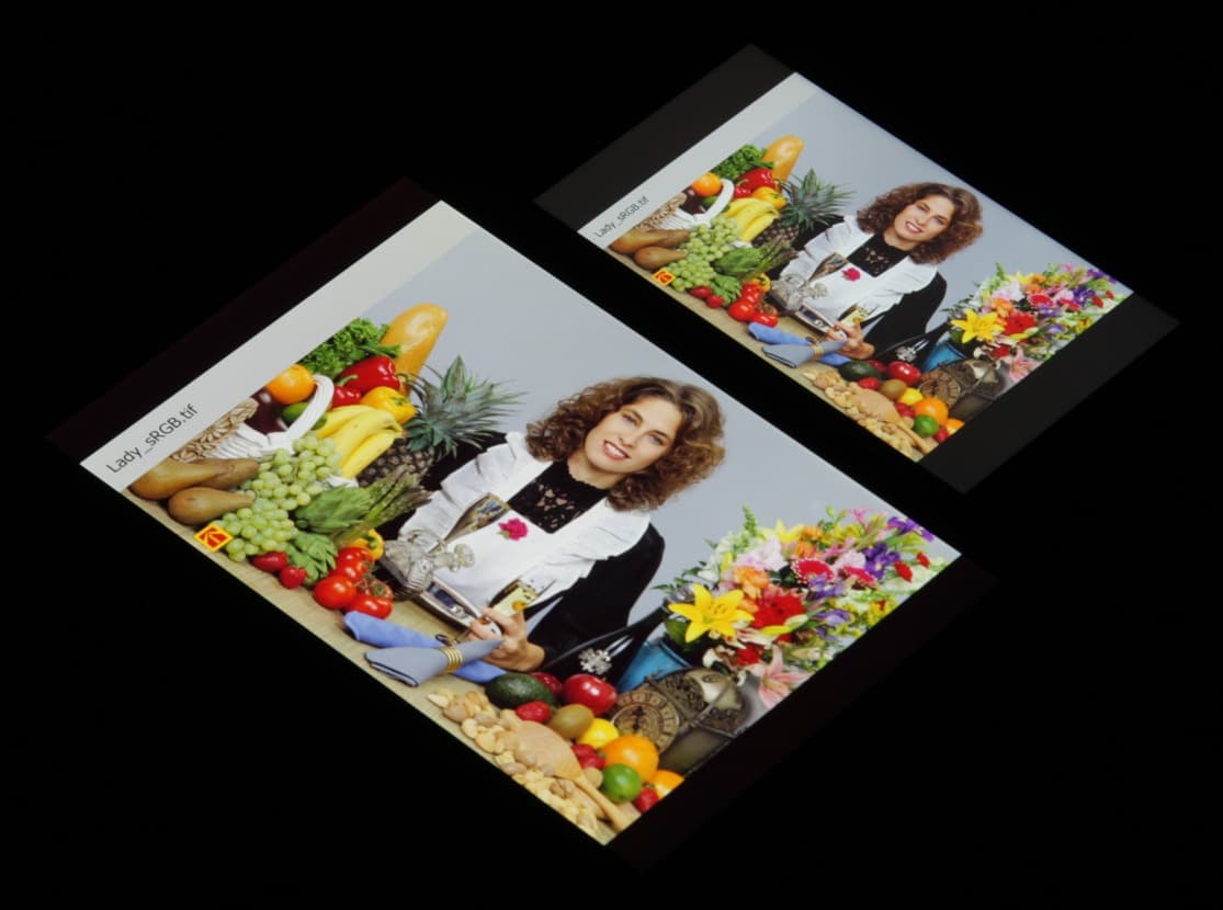 В итоге визуально цвета на этом экране несколько отличаются от естественных, так как практически все изображения рассчитаны на демонстрацию на устройствах отображения с охватом sRGB. Баланс оттенков на шкале серого средний, так как цветовая температура существенно выше стандартных 6500 К, но отклонение от спектра абсолютно черного тела (ΔE) ниже 10, что для потребительского устройства считается приемлемым показателем. При этом цветовая температура мало изменяется от оттенка к оттенку — это положительно сказывается на визуальной оценке цветового баланса. (Самые темные области шкалы серого можно не учитывать, так как там баланс цветов не имеет большого значения, да и погрешность измерений цветовых характеристик на низкой яркости большая.)
