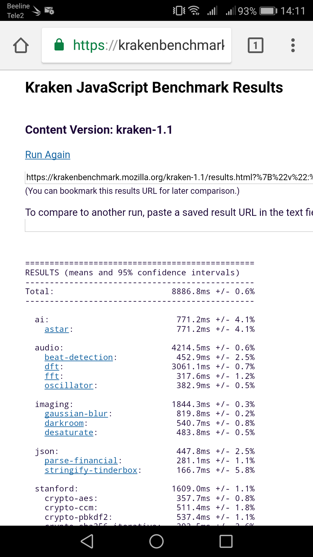| Mozilla Kraken (мс, меньше — лучше) | 8887 | 9284 | 9992 | 8179 | 12559 |