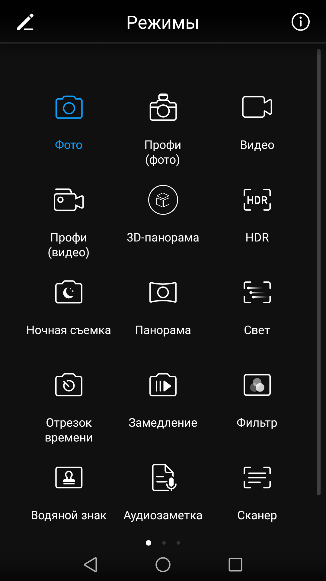 В меню есть ручные настройки для фото- и видеосъемки: выдержка (от 1/4000 до 30 с), светочувствительность (до ISO 3200), экспокоррекция, баланс белого, а также варианты фокусировки. До них можно добраться, выдвинув панель снизу, то есть ручной режим тут всегда под рукой. Появляется и возможность сохранять снимки в RAW. Камера предлагает большое количество сюжетных режимов (от HDR до съемки света или еды), часть из них можно скачать самостоятельно.