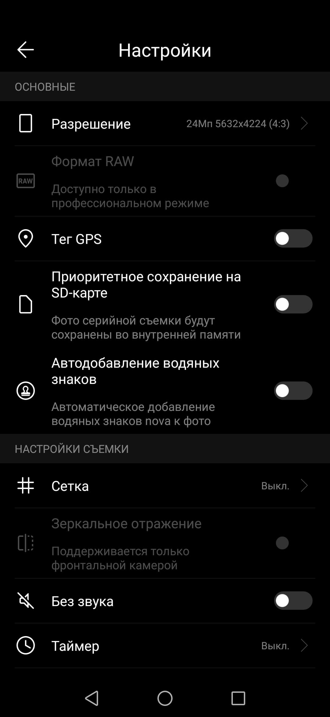 Имеется продвинутый ручной режим, в котором можно собственноручно выбирать светочувствительность, выдержку, способ фокусировки и баланс белого. В этом режиме появляется возможность сохранять снимки в RAW.