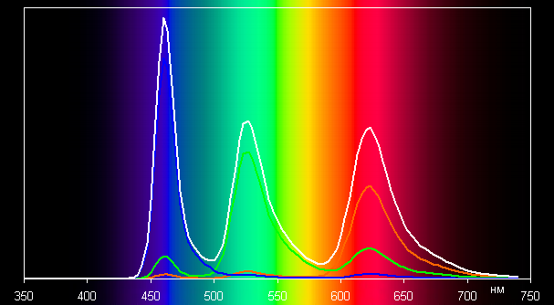В случае профиля Обычные баланс оттенков на шкале серого хороший, так как на белом поле цветовая температура лишь немного ниже стандартных 6500 К (порядка 6300 К), и отклонение от спектра абсолютно черного тела (ΔE) 7 единиц, что для потребительского устройства считается приемлемым показателем.