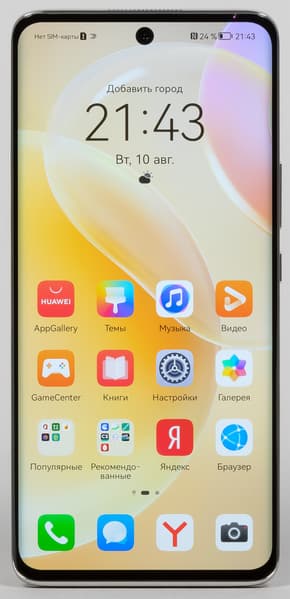 Цветопередача хорошая, цвета в меру насыщенные, цветовой баланс у экранов немного различается. Напомним, что фотография не может служить надежным источником сведений о качестве цветопередачи и приводится только для условной наглядной иллюстрации. В частности, выраженный красноватый оттенок белого и серого полей, присутствующий на фотографиях экрана Huawei Nova 8, при перпендикулярном взгляде визуально отсутствует, что подтверждается аппаратными тестами с помощью спектрофотометра. Причина в том, что спектральная чувствительность матрицы фотоаппарата неточно совпадает с этой характеристикой человеческого зрения. Заметим, что в данном случае картинка занимает в высоту (при ландшафтной ориентации экрана) всю доступную для вывода изображения область и заходит на загнутые края экрана, что приводит к легкому затемнению и искажению цвета. Также на свету эти области почти всегда бликуют, что еще больше мешает при просмотре изображений, выведенных на весь экран. И даже картинка фильмов с соотношением сторон 16:9 заходит на загибы, что очень не к месту в случае видео.