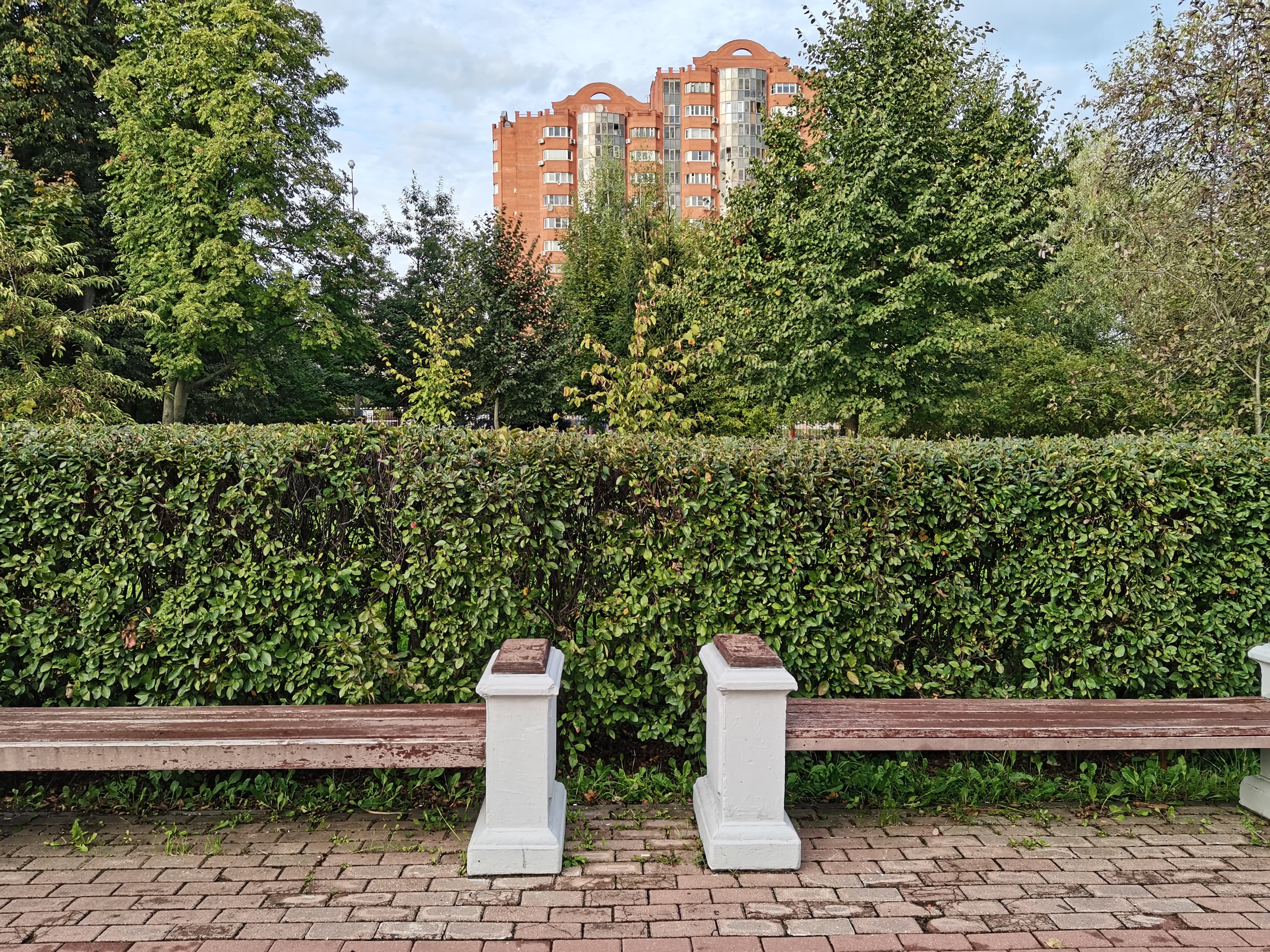 Основной 64-мегапиксельный модуль умеет снимать в разрешении 16 Мп с объединением пикселей Quad Bayer. Как минимум, это помогает лучше справляться с недостаточным освещением, что очень хорошо заметно по разнице в снимках ярких предметов в пасмурную погоду. В таких условиях использование режим 16 Мп явно предпочтительнее. При включении этого режима, кстати, кадр немного обрезается, так что результат получается не чистым масштабированием 1:2.
