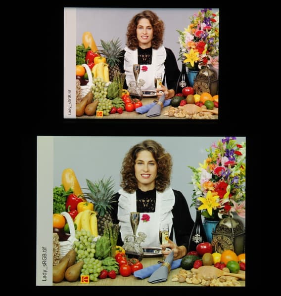 Отметим, что на экранах с широким цветовым охватом (без соответствующей коррекции) цвета́ обычных изображений, оптимизированных для устройств sRGB, выглядят неестественно насыщенными. Отсюда и рекомендация: в большинстве случаев смотреть кино, фотографии и все естественное лучше при выборе профиля Обычные, и только если фотография или видео имеют охват DCI-P3, принятый в цифровом кинематографе и «родной» для топовых устройств Apple, имеет смысл переключить профиль на Яркие.
