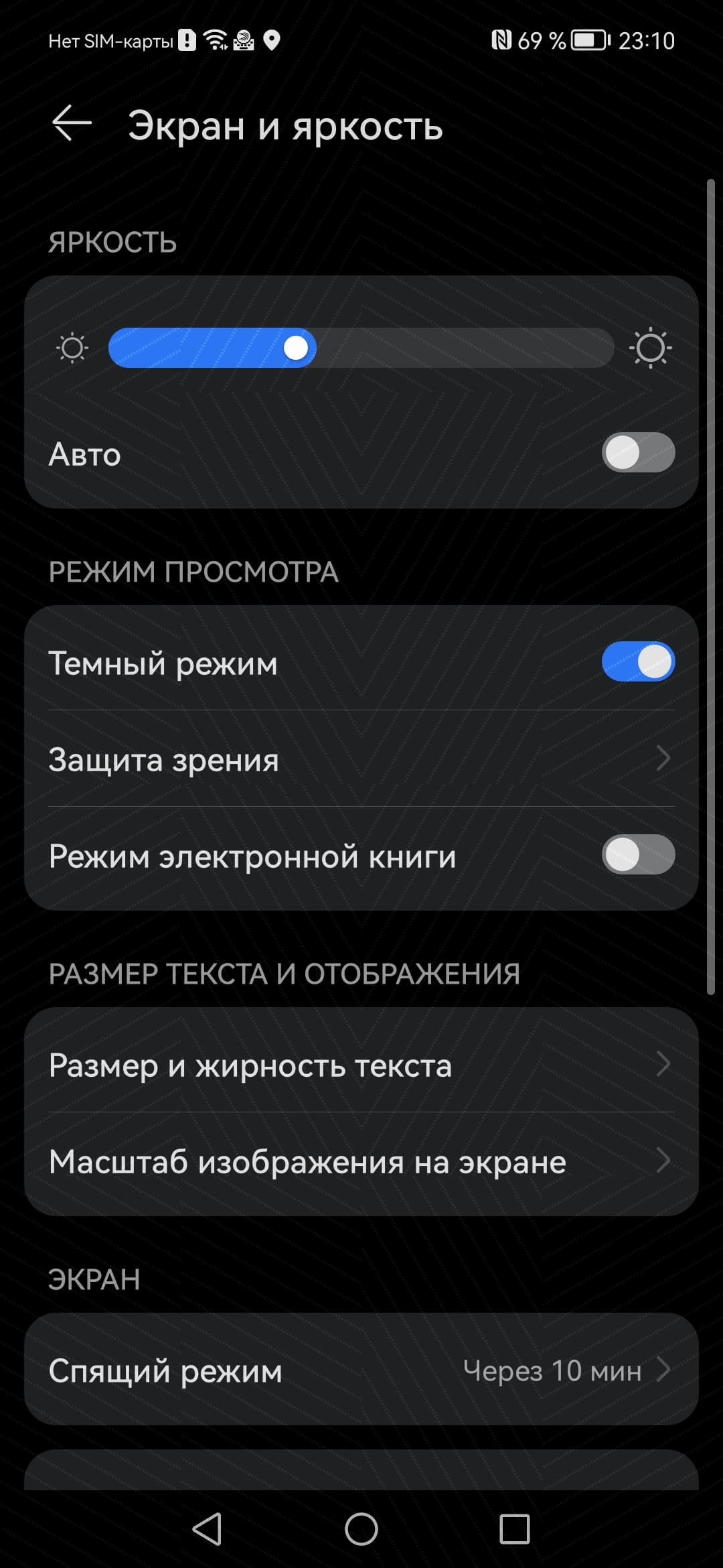 Подведем итоги. Экран имеет очень высокую максимальную яркость (640 кд/м²) и обладает отличными антибликовыми свойствами, поэтому устройством без особых проблем можно пользоваться вне помещения даже летним солнечным днем. В полной темноте яркость можно понизить до комфортного значения (вплоть до 3 кд/м²). Допустимо использовать режим с автоматической подстройкой яркости, который работает адекватно. К достоинствам экрана нужно отнести эффективное олеофобное покрытие, режим с высокой частотой обновления (90 Гц), а также близкий к sRGB цветовой охват и хороший цветовой баланс (при выборе правильного профиля). Заодно напомним про общие достоинства OLED-экранов: истинный черный цвет (если в экране ничего не отражается) и заметно меньшее, чем у ЖК, падение яркости изображения при взгляде под углом. Типичного для OLED недостатка — значимой модуляции яркости экрана, появляющейся на низкой яркости, — можно избежать, включив функцию Снижение мерцания. В целом качество экрана очень высокое. Отдельно отметим, что с точки зрения качества изображения, от загнутых краев только вред, так как эта дизайнерская находка вносит искажения цветового тона и уменьшает яркость на краях картинки, а в условиях внешней освещенности приводит к неизбежным бликам вдоль хотя бы одной длинной стороны экрана.