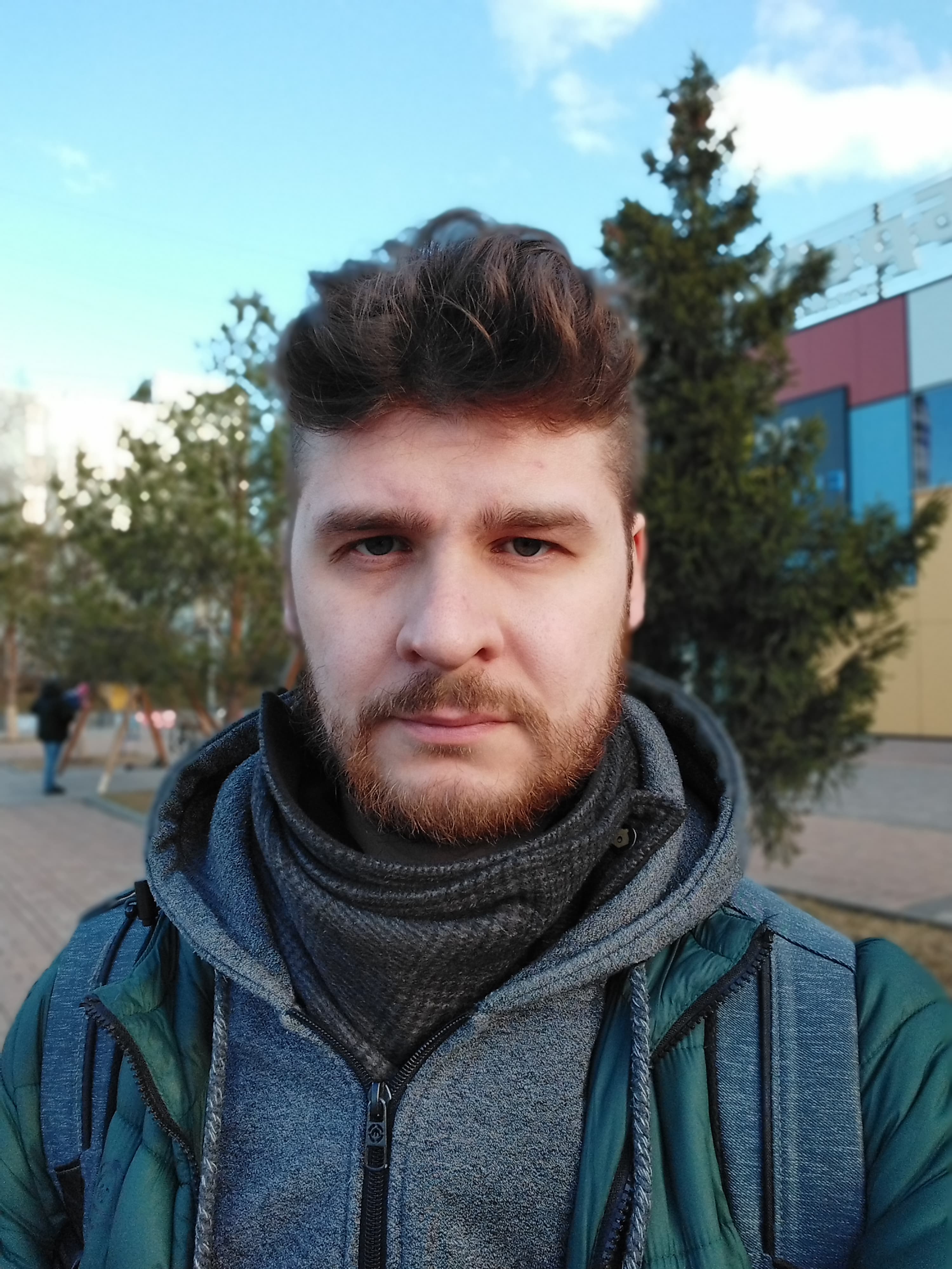 Фронтальная камера тут попроще — 16 Мп (против 32 Мп). К ней нет никаких претензий, если только не включать режим имитации боке — тогда граница размытия на волосах выглядит грубоватой.