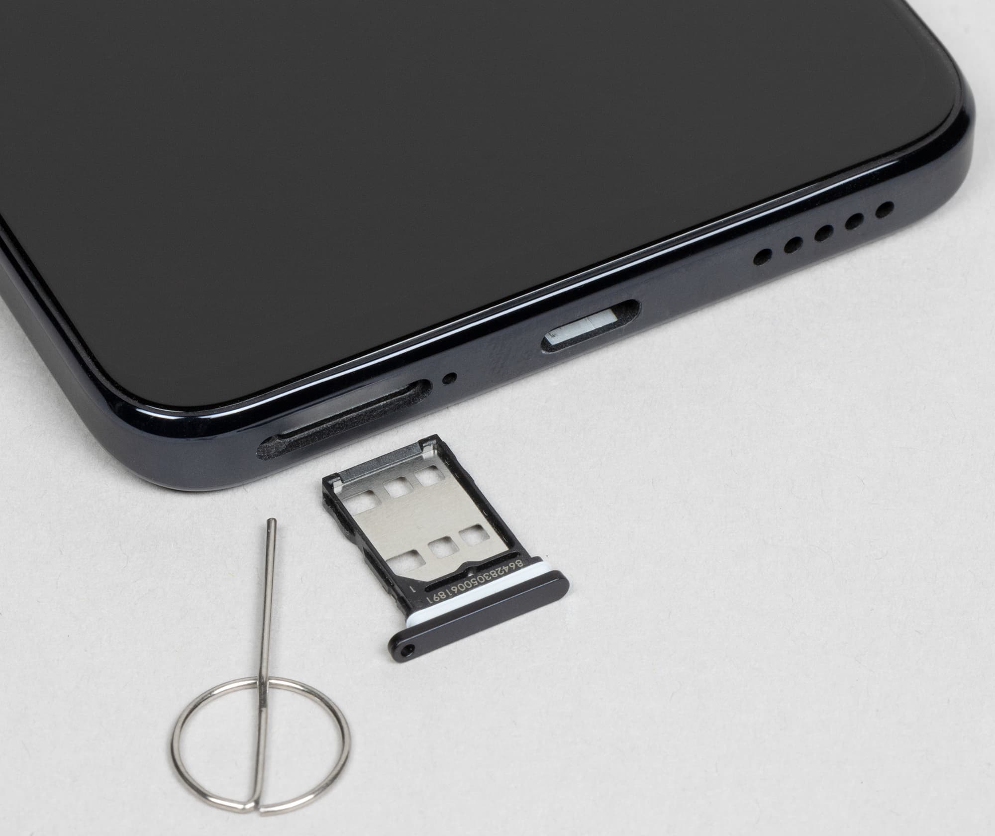 Нижний торец содержит монофонический динамик, микрофон и разъем USB Type-C.