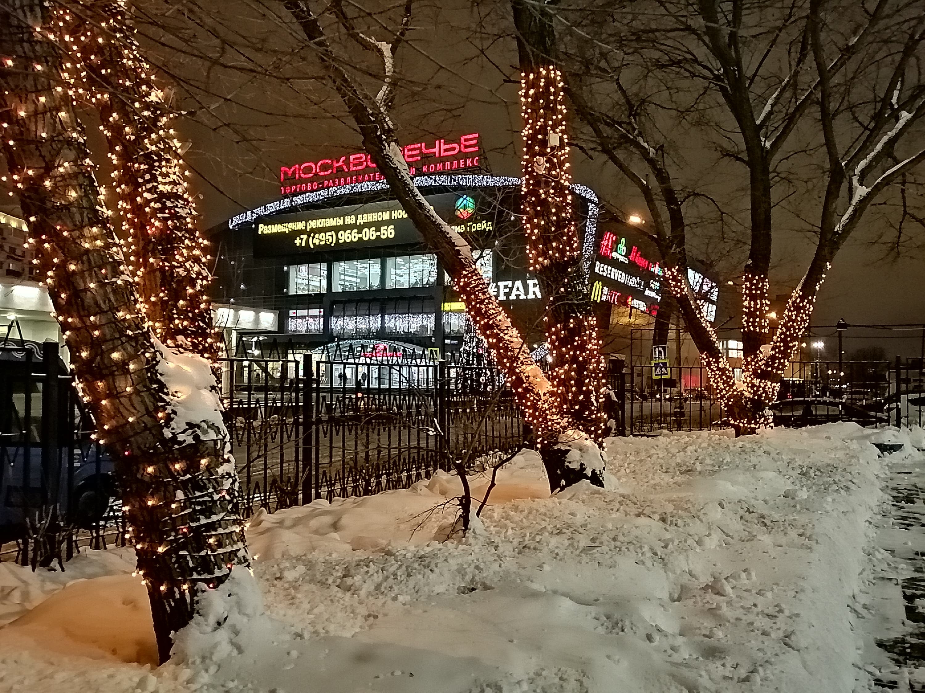 Ночной режим порадовал. Он не творит чудес и не превращает ночь в день, но программная обработка вполне адекватная. В результате можно нормально разглядывать не только красиво подсвеченные объекты, хотя для разглядывания лучше все-таки сделать изображение поменьше, в полном разрешении картинка страшненькая. Напомним, что ночной режим не позволяет снимать динамичные сцены (из-за смещения движущихся объектов между «склеиваемыми» кадрами), но зато нивелирует дрожание рук фотографа, пытающегося снимать в потемках, что очень хорошо видно на наших тестовых фотографиях. Единственное серьезное замечание к этому режиму — сомнительный баланс белого.