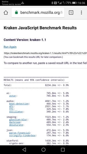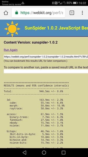 Что касается бенчмарков для оценки скорости движка javascript, то стоит всегда делать скидку на то, что в них результаты существенно зависят от браузера, в котором запускаются, так что сравнение может быть истинно корректным только на одинаковых ОС и браузерах, а такая возможность имеется при тестировании не всегда. В случае с ОС Android мы всегда стараемся использовать Google Chrome.
