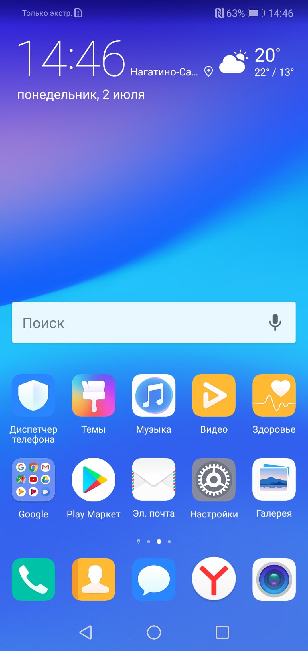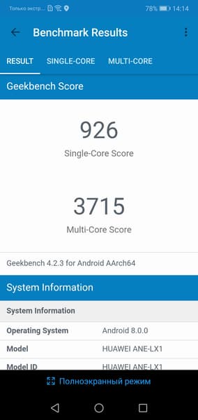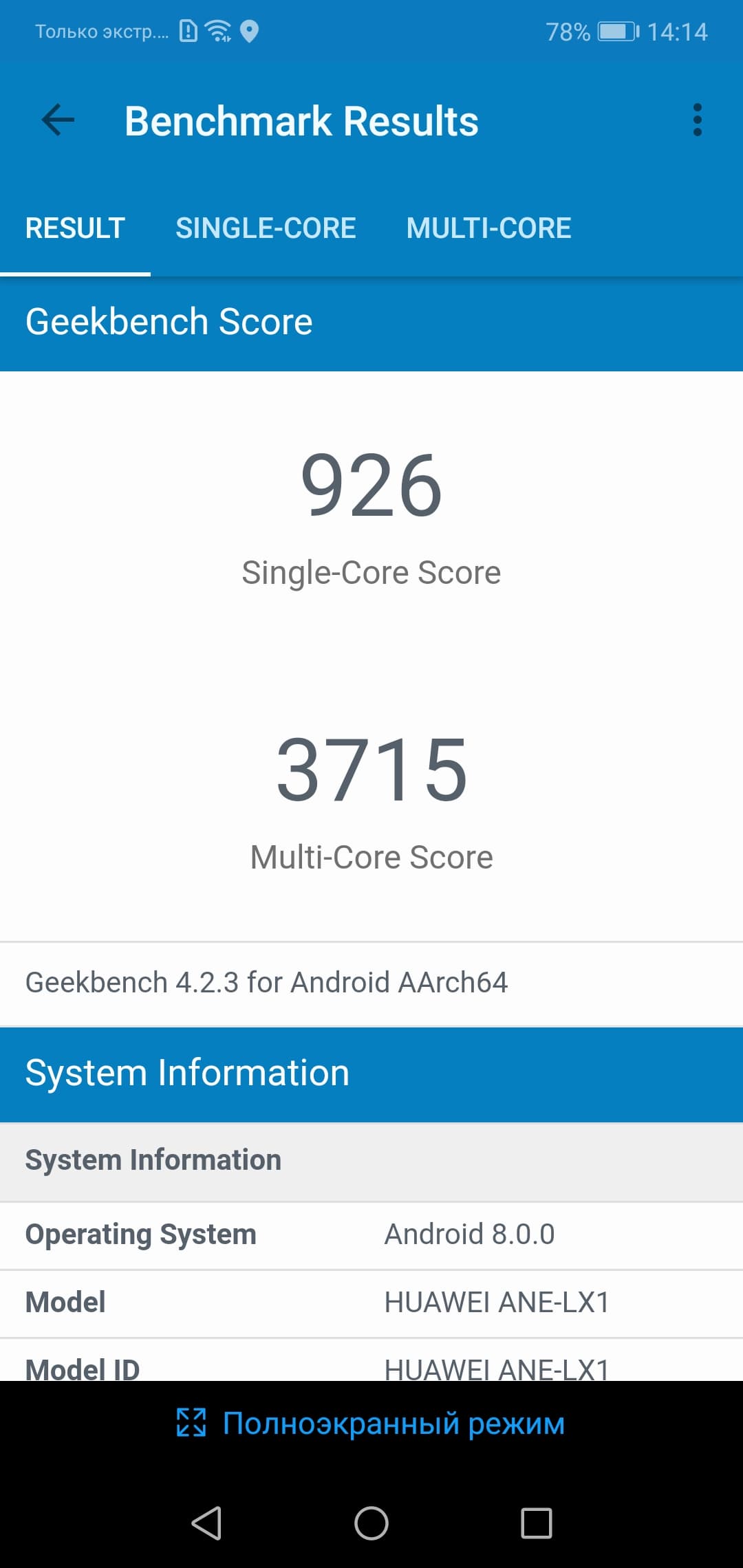 В качестве программной платформы используется Google Android 8.0 с хорошо знакомой фирменной оболочкой EMUI 8.0 с возможностью обновления по воздуху. Здесь все стандартно. Стоит лишь отметить особенности, связанные с переходом на новое вытянутое в высоту соотношение сторон экрана («FullView»): всем таким аппаратам добавили полоску «Полноэкранный режим», которая появляется каждый раз при запуске нового приложения. Неудобно то, что когда на нее нажимаешь, приложение обязательно перезагружается, и теряется весь прогресс. Так что нужно либо нажимать ее сразу же, либо уже не трогать до конца цепочки действий. Особенно это раздражает в играх, которые долго запускаются, а после нажатия полоски приходится ждать повторного запуска еще раз.