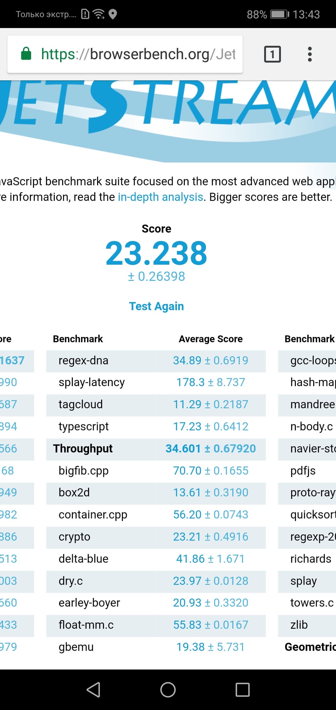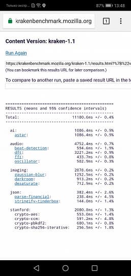 | Mozilla Kraken (мс, меньше — лучше) | 11180 | 11974 | 11431 | 16739 |