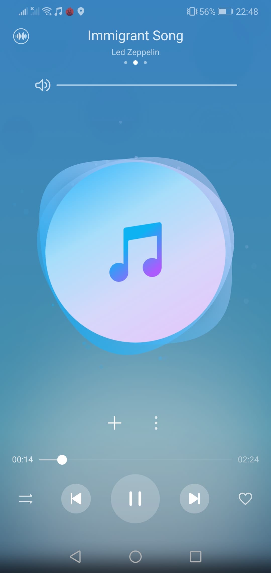 Для прослушивания музыки используется собственный аудиоплеер с настройками аудиоэффектов Huawei Histen. Можно выбирать из пресетов эквалайзера, но часть настроек становится доступной только с подключенными наушниками. В наушниках смартфон звучит для своего уровня весьма неплохо. Это, конечно, не топовый и не меломанский уровень, но даже без накручивания эквалайзера звук показался нам более густым, насыщенным и ярким, чем можно встретить обычно. Единственное замечание: чуть не хватает громкости на максимальном уровне.