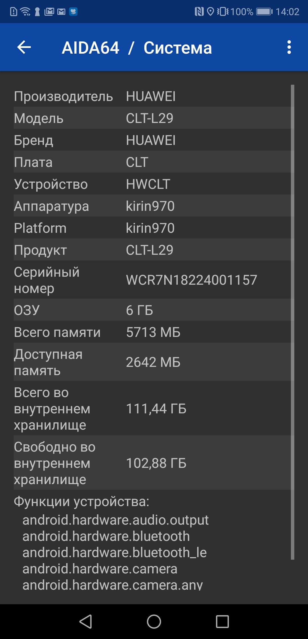 Основные характеристики Huawei P20 Pro (модель CLT-L29)