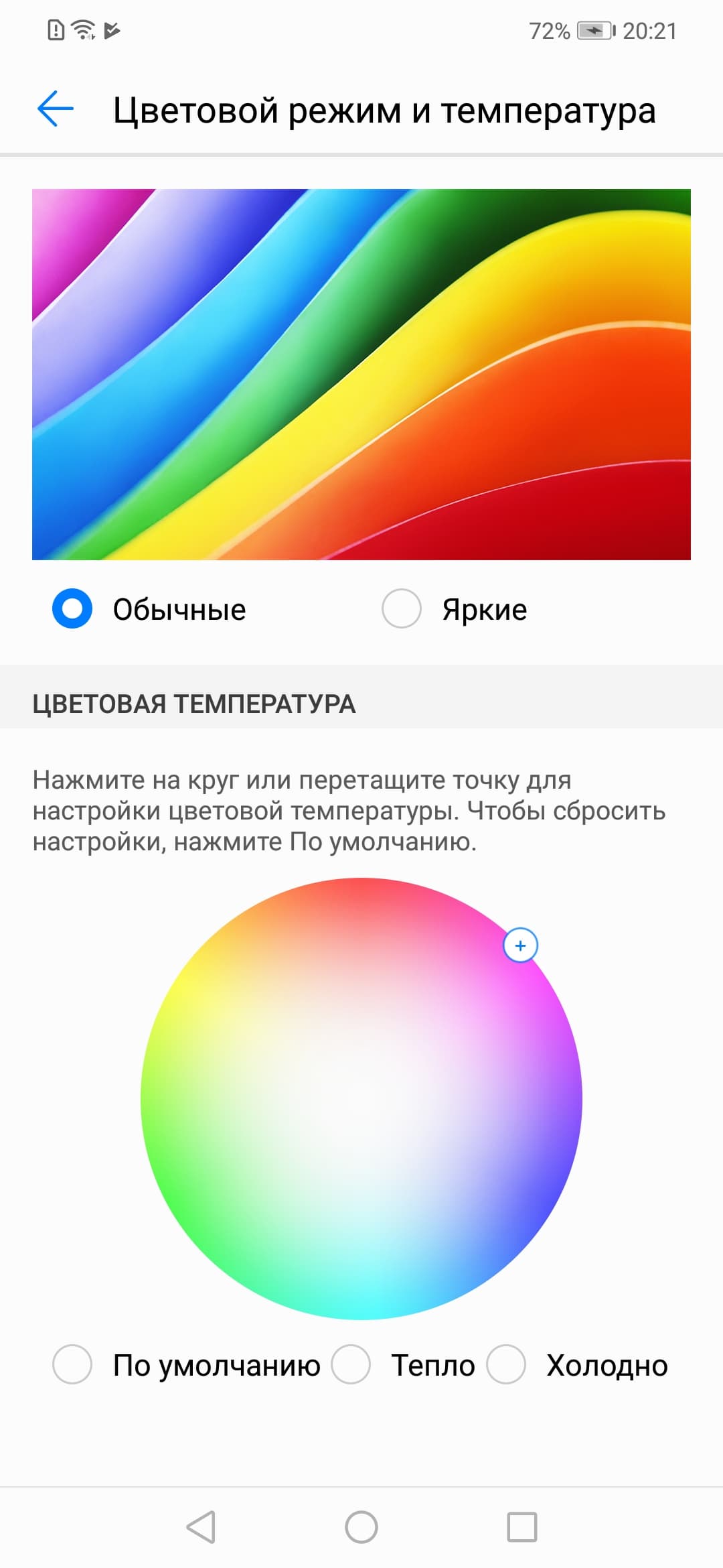 В этом устройстве есть возможность скорректировать цветовой баланс с помощью регулировки оттенка на цветовом круге.
