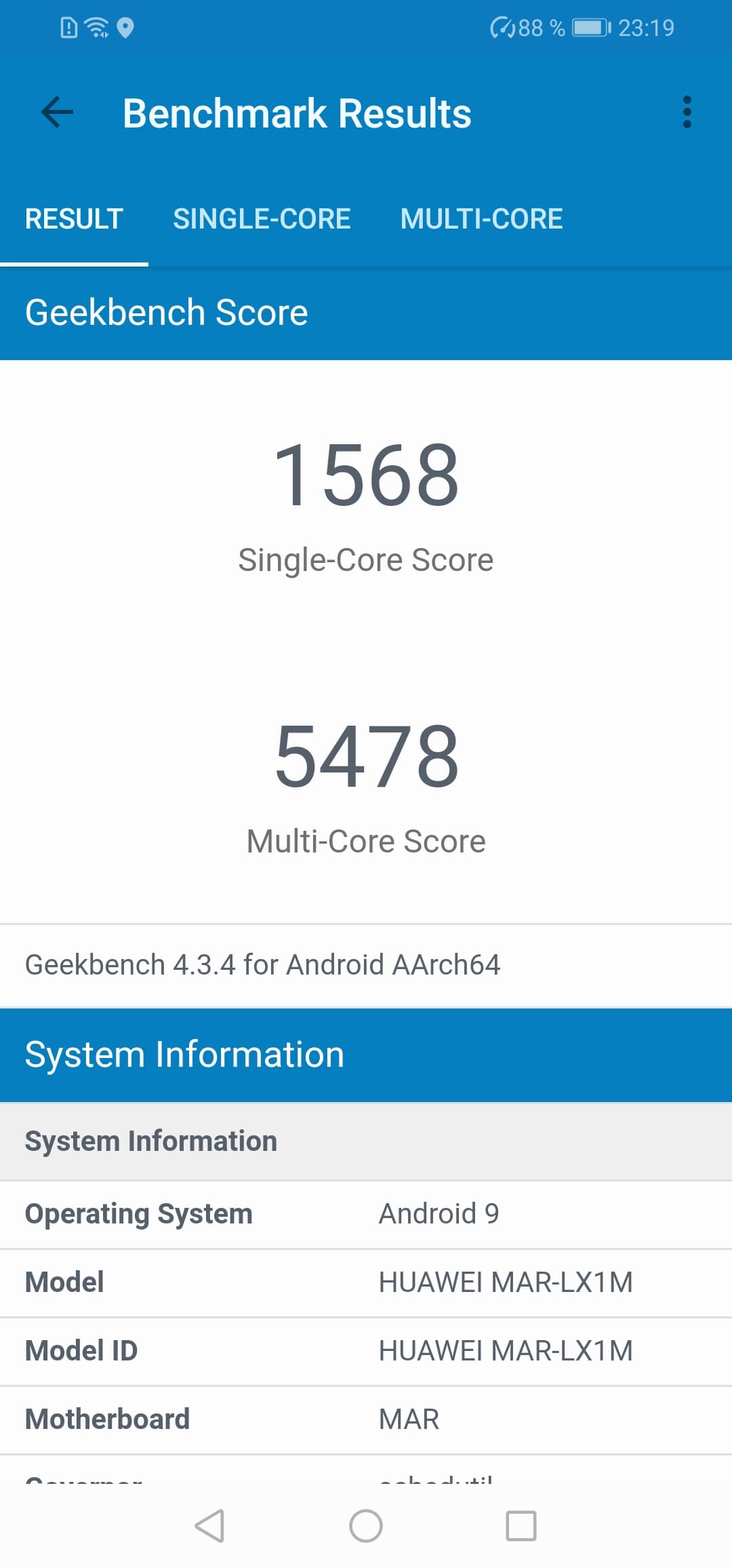 - SoC Kirin 710, 8 ядер: 4×Cortex-A73 @2,2 ГГц + 4×Cortex-A53 @1,7 ГГц
