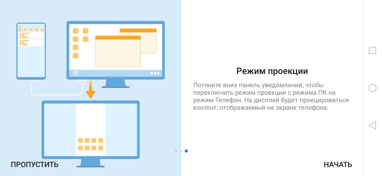 Данный аппарат поддерживает DisplayPort Alt Mode для USB Type-C — вывод изображения и звука на внешнее устройство при подключении к порту USB. Работу в таком режиме мы опробовали совместно с адаптером Tronsmart CTHA1. При подключении к нашему монитору вывод видео осуществляется в режиме 1080p при 75 Гц кадровой частоты. Режимов работы два: вывод альтернативного рабочего стола (режим ПК) или простое копирование экрана смартфона (режим Телефон).