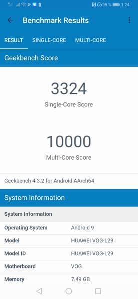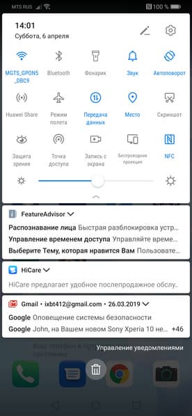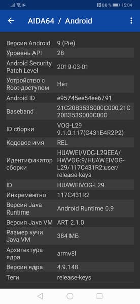 - Операционная система Android 9, EMUI 9.1