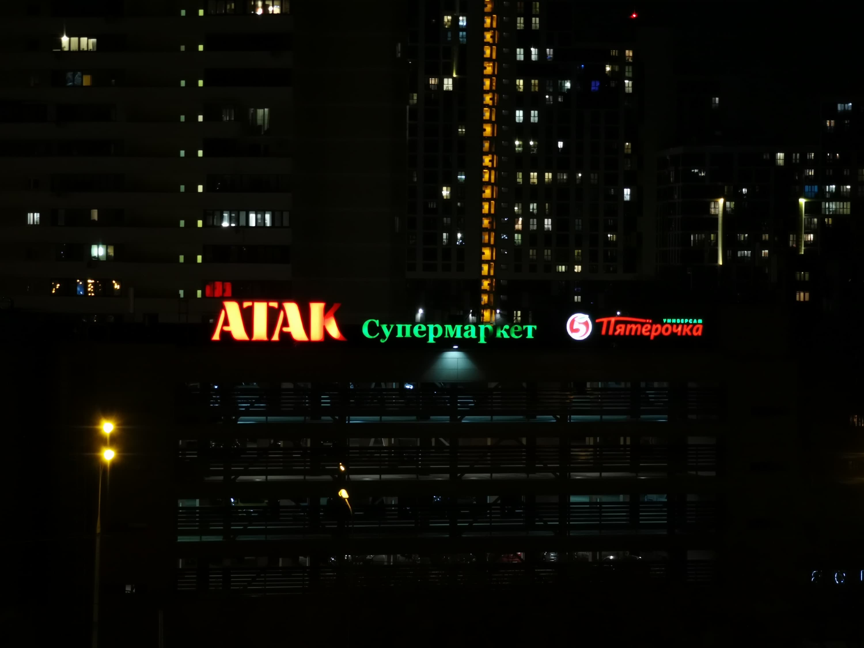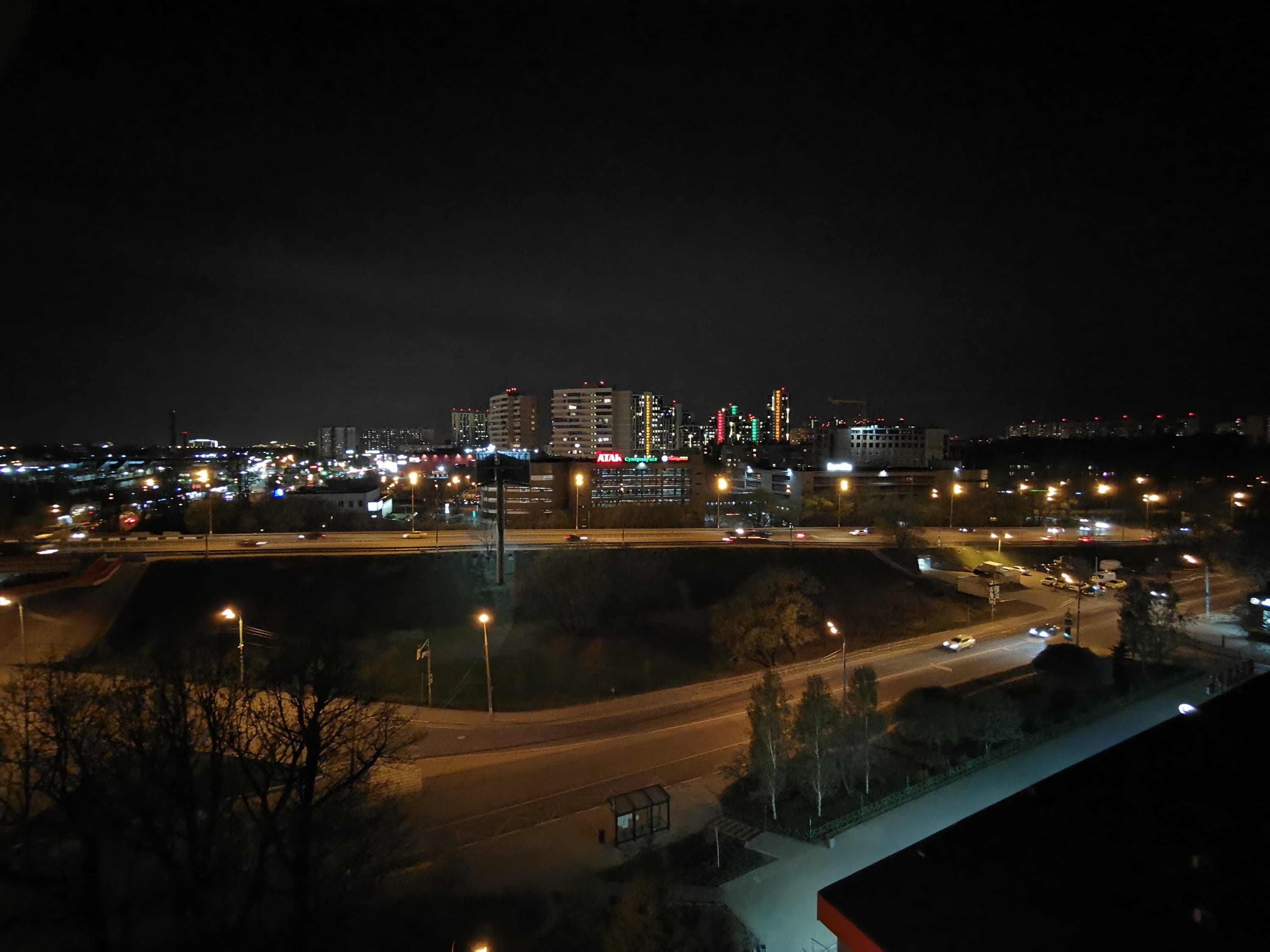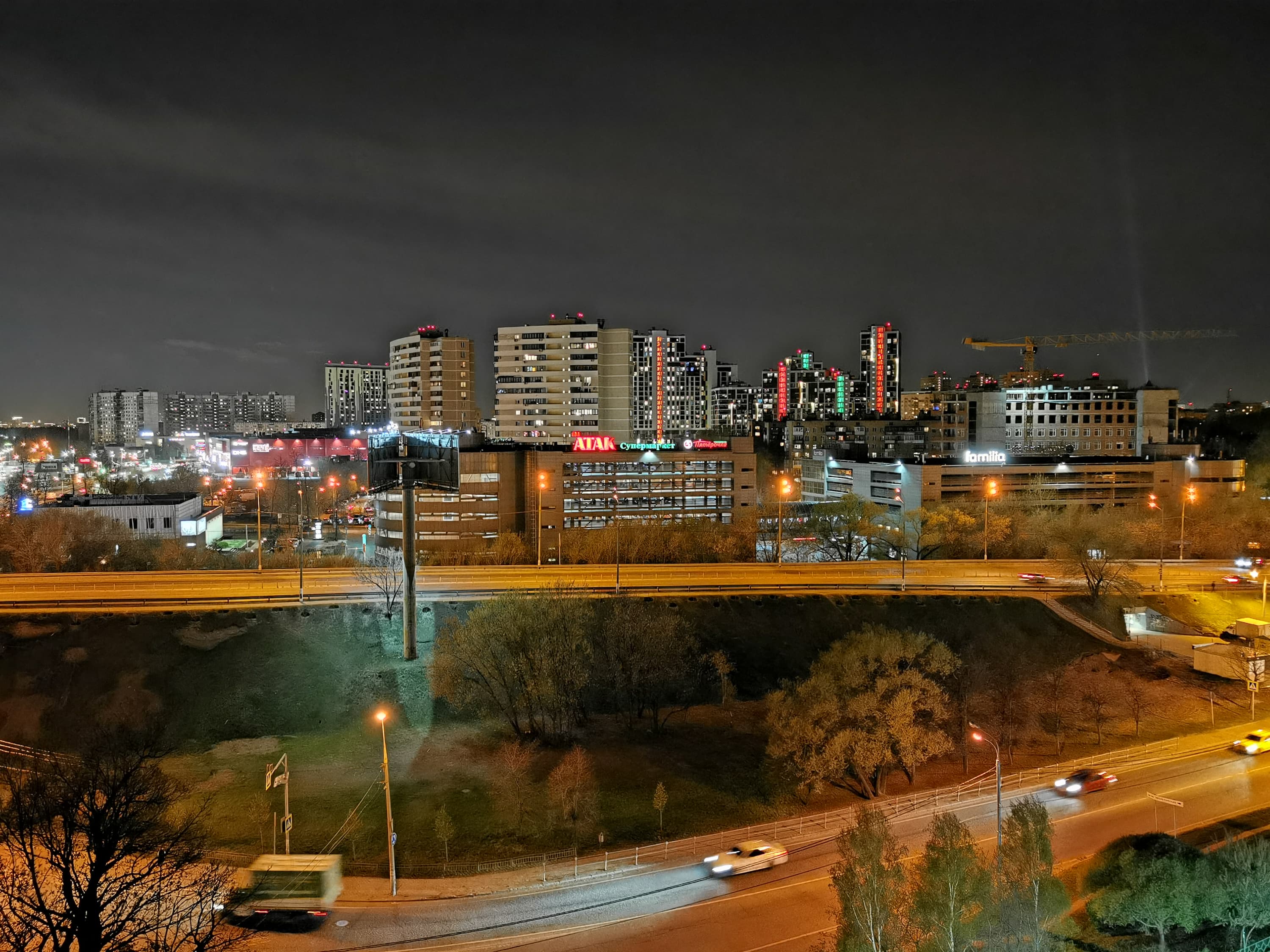 Конечно, с ухудшением освещения качество снимков начинает деградировать. Впрочем, многие смартфоны были бы рады такому качеству и днем. Освещенные статичные объекты по-прежнему получаются неплохо, но подавление шумов уже приводит к неприятным артефактам, а движущиеся объекты так вообще не снять. Чтобы не задирать до бесконечности светочувствительность, камера предлагает специальный ночной режим, в котором имитирует съемку с 4-секундной выдержкой, делая подряд и склеивая несколько снимков. Результат полностью соответствует ожиданиям, качество картинки улучшается, становится возможно разглядеть то, на что не хватало освещения в обычном режиме.