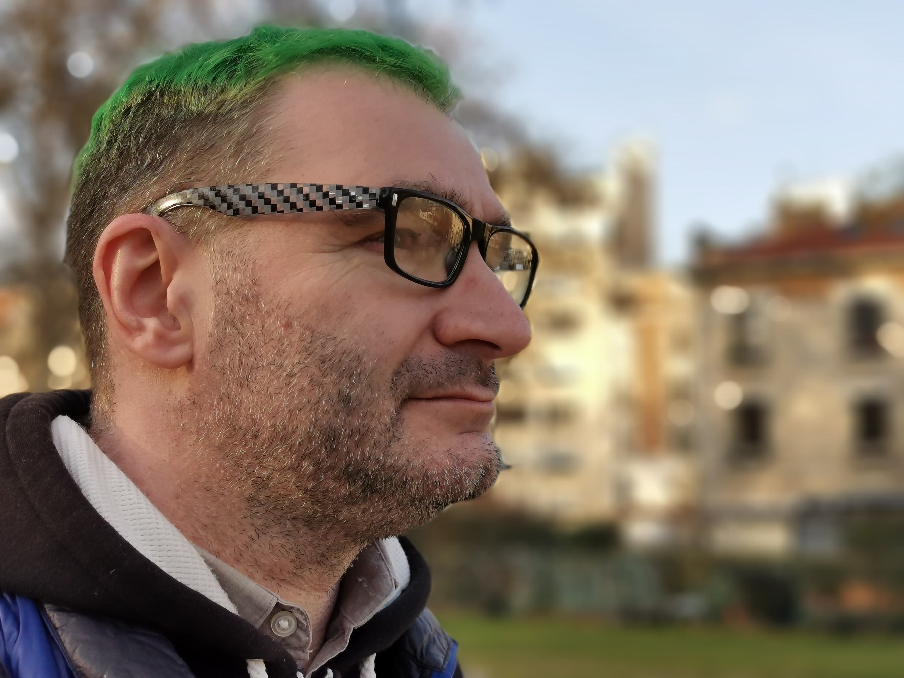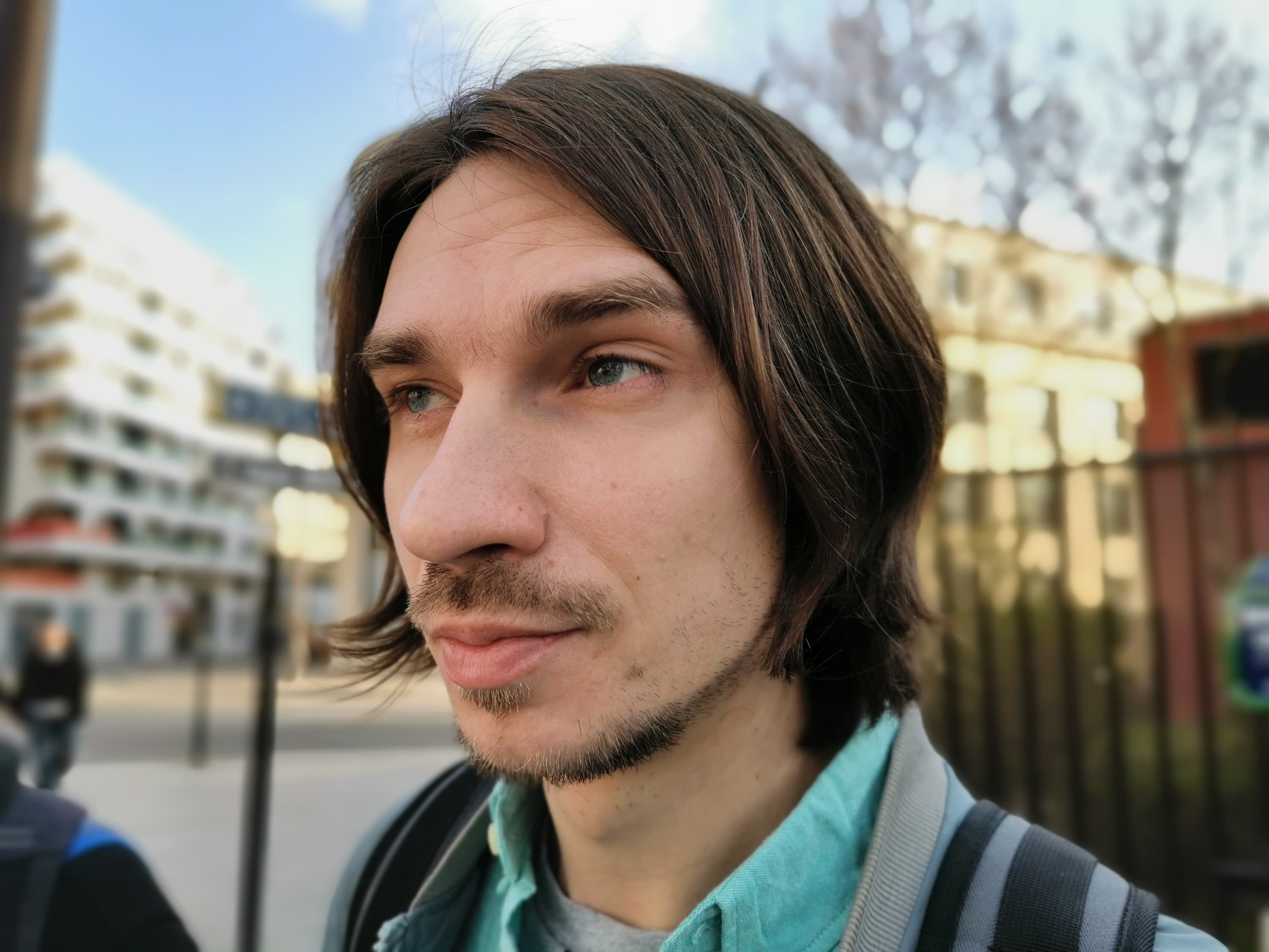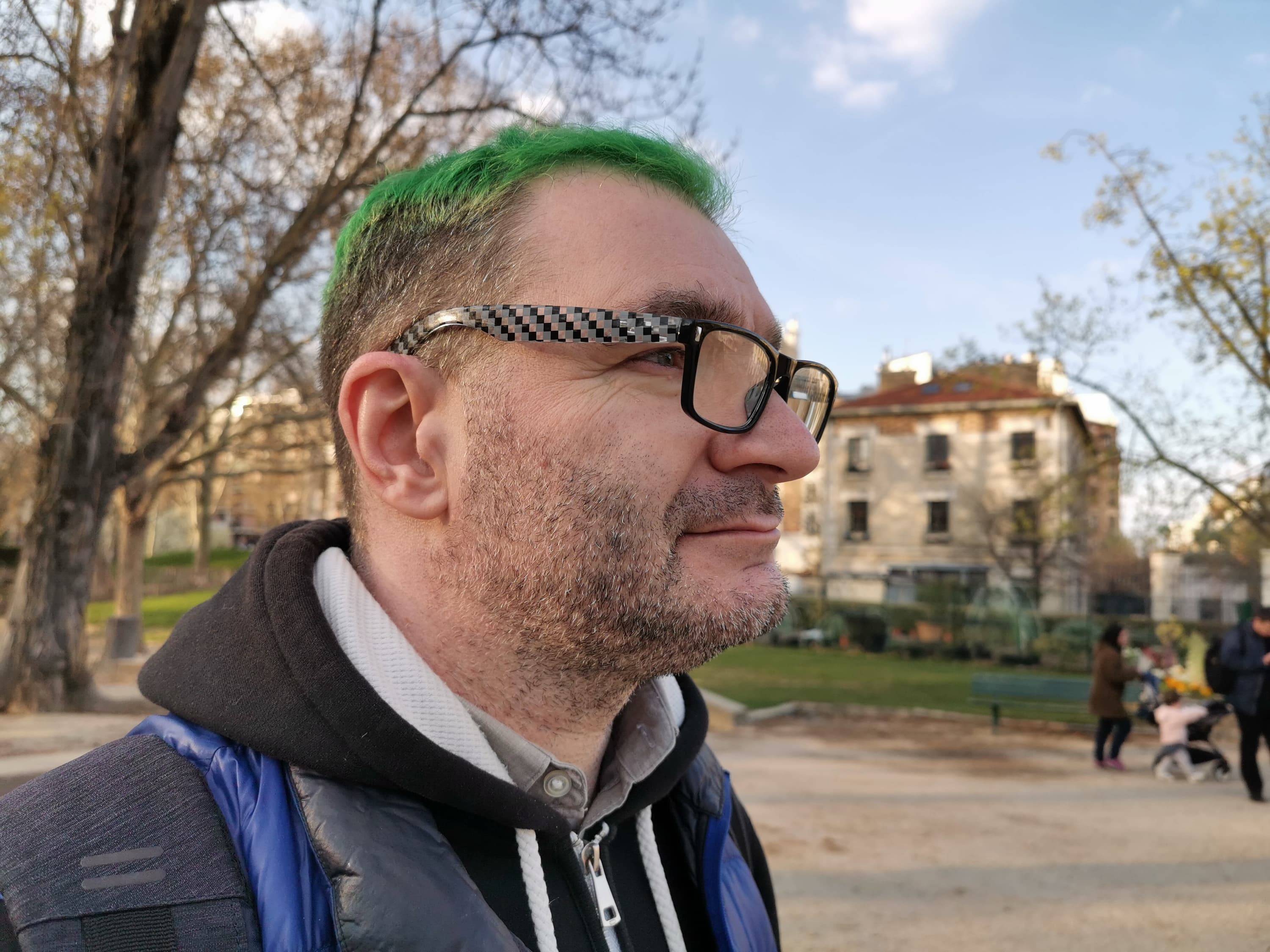 Фронтальная камера одиночная, она вписана в маленький каплевидный вырез в экране. Модуль с матрицей на 32 Мп имеет объектив с диафрагмой f/2,0 без автофокусировки. Даже с одним модулем камера вполне достойно справляется со своими задачами. На 32 Мп она не снимает, но если отмасштабировать снимки (или выбрать меньшее разрешение), то детализация и резкость впечатляют, цветопередача в целом в норме, камера не пасует при любом освещении, и ее возможностей вполне достаточно большинству пользователей. А вот алгоритмы обтравки центрального объекта в кадре для размытия фона вокруг него все еще далеки от идеала, в сложной обстановке и особенно при сложной прическе они по-прежнему пасуют, не могут полноценно имитировать «оптическую» глубину резкости.