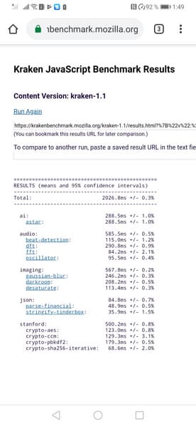 Что касается бенчмарков для оценки скорости движка javascript, то стоит всегда делать скидку на то, что в них результаты существенно зависят от браузера, в котором запускаются, так что сравнение может быть истинно корректным только на одинаковых ОС и браузерах, а такая возможность имеется при тестировании не всегда. В случае с ОС Android мы всегда стараемся использовать Google Chrome.