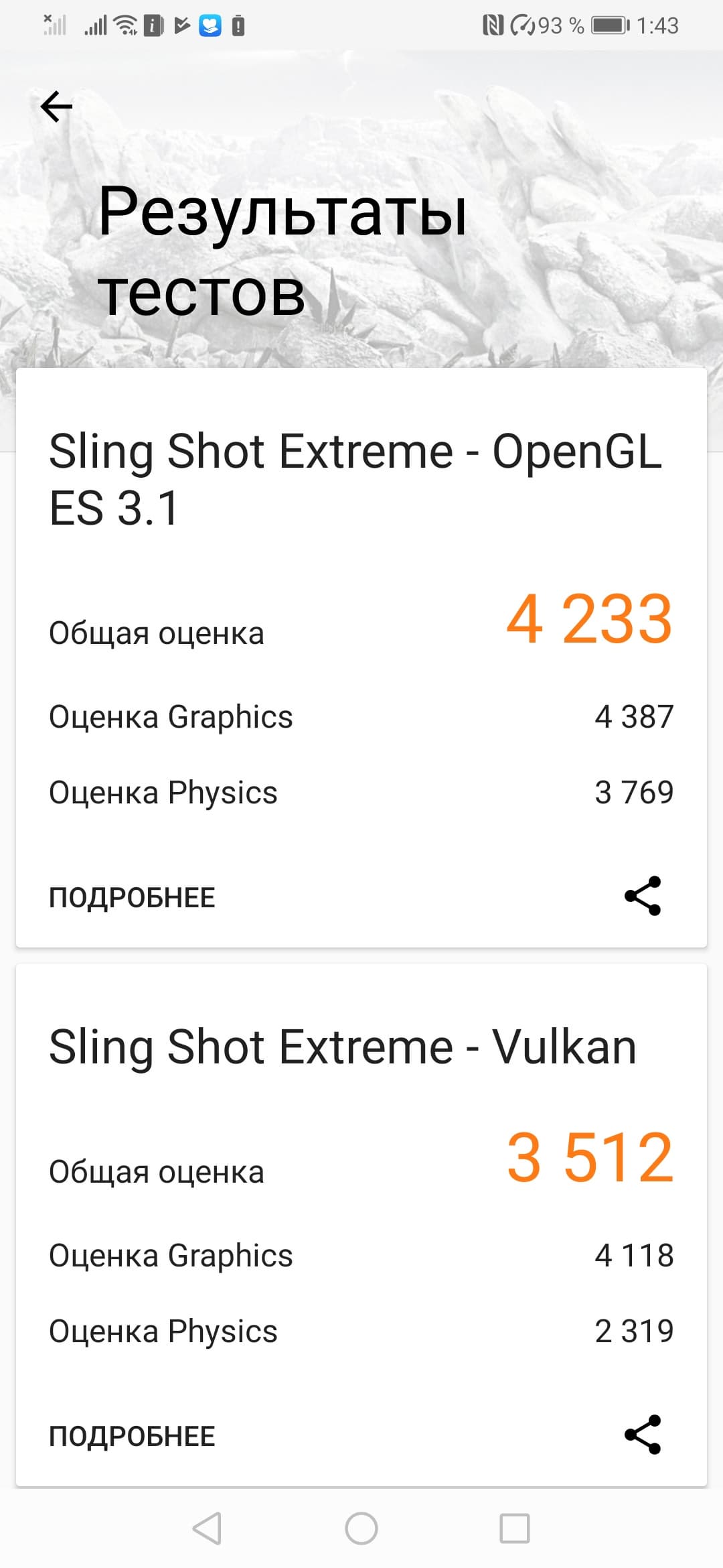| 3DMark Ice Storm Sling Shot ES 3.1 (больше — лучше) | 4233 | 4384 | 5433 | 3416 | 3348 |