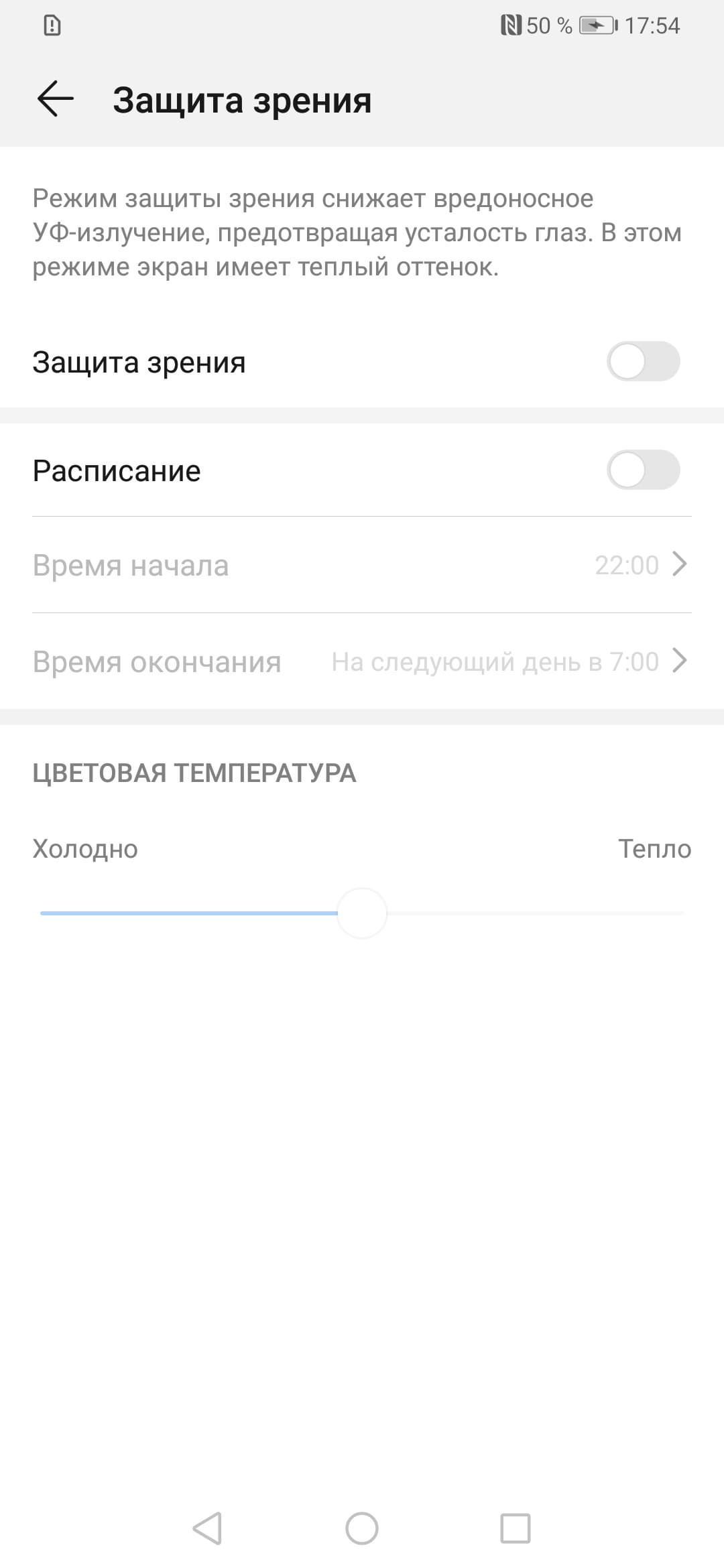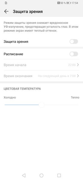 В ее описании, конечно, приведен традиционный бред про вредоносное УФ-излучение и усталость глаз, но такая коррекция, в принципе, может быть полезной, что разъяснено в нашей статье про iPad Pro 9,7″. В любом случае, при развлечении с планшетом или смартфоном на ночь глядя лучше снизить яркость экрана до минимального, но еще комфортного уровня. Дополнительно желтить экран никакого смысла нет.