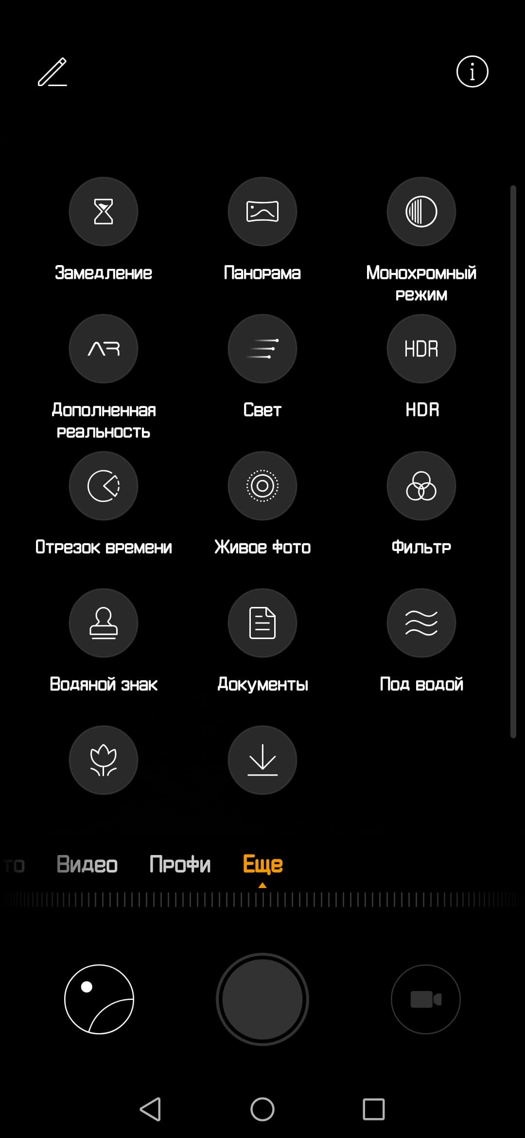 Интерфейс приложения камеры привычный, с очень богатыми возможностями: есть поддержка ИИ, имеется ручной режим с возможностью сохранения снимков в RAW, режим портретного размытия фона, монохромный и еще масса других.