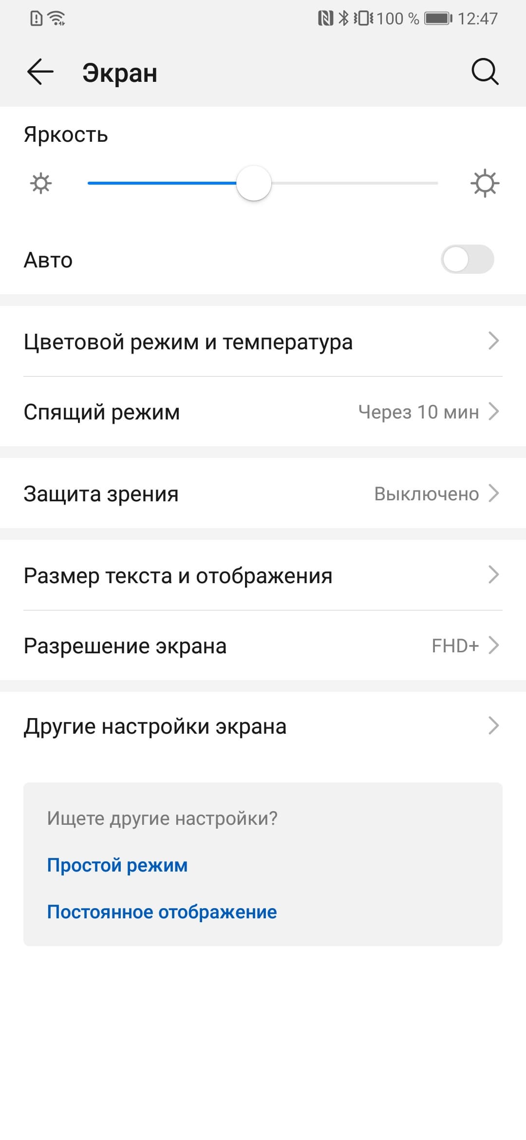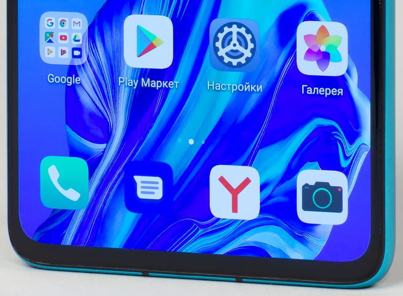 Рамка вокруг экрана достаточно тонкая, угловые части самого дисплея сильно закруглены. Зато нет закруглений (загибов) у стекла дисплея, поэтому нет и столь мешающих комфортному восприятию бликов, как у Huawei P30 Pro.