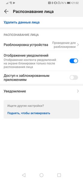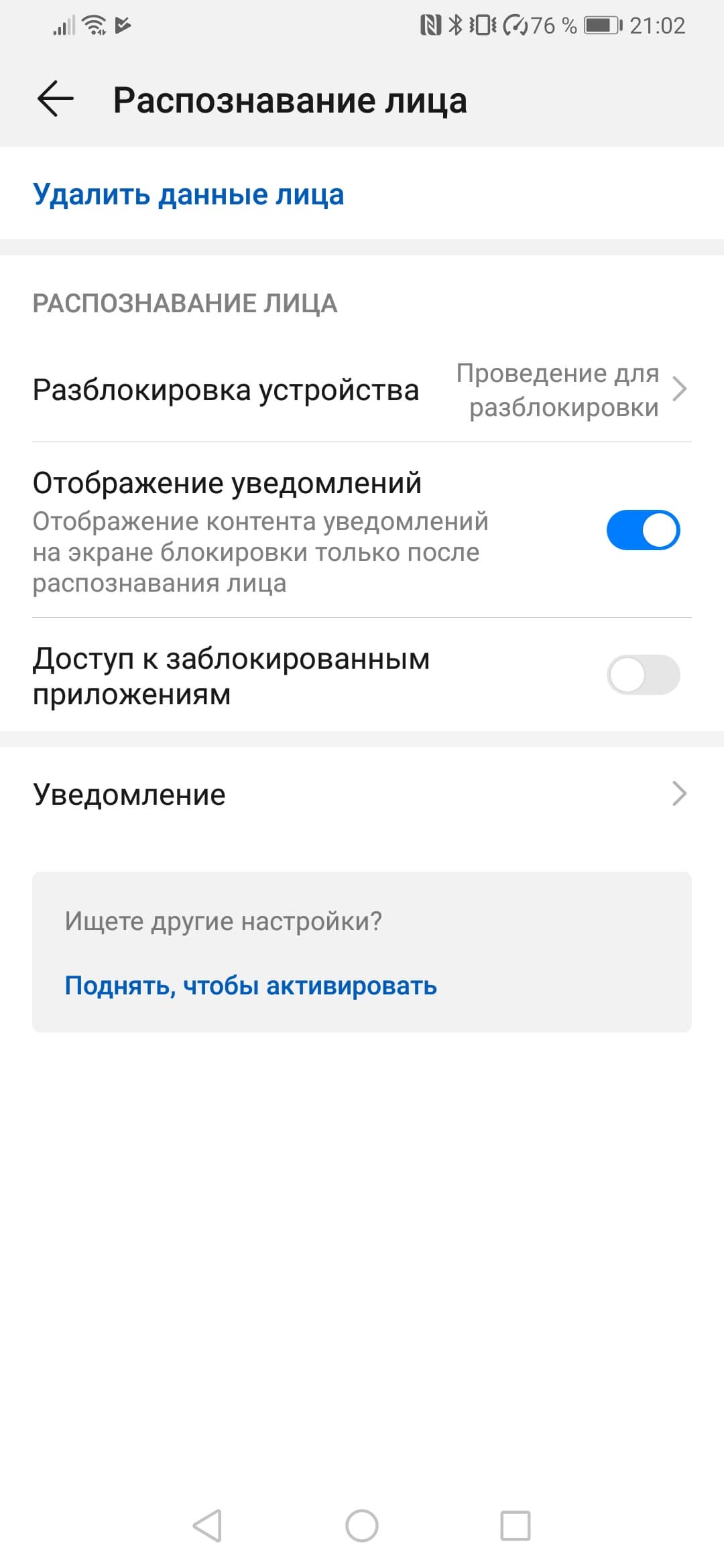 Имеется функция разблокировки по лицу, но во флагманских Huawei P30 и P30 Pro почему-то не реализовали ни специального сканера радужной оболочки глаза, ни инфракрасной камеры. Поэтому функция разблокировки работает лишь с помощью фронтальной камеры. Это не такой надежный уровень защиты, как, например, в iPhone X. В темноте смартфон пытается поднимать яркость экрана, чтобы осветить лицо владельца и опознать его, и порой это срабатывает, но чаще всего — нет. Тогда приходится использовать сканер отпечатков пальцев.