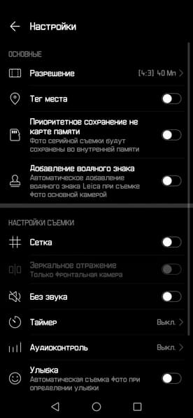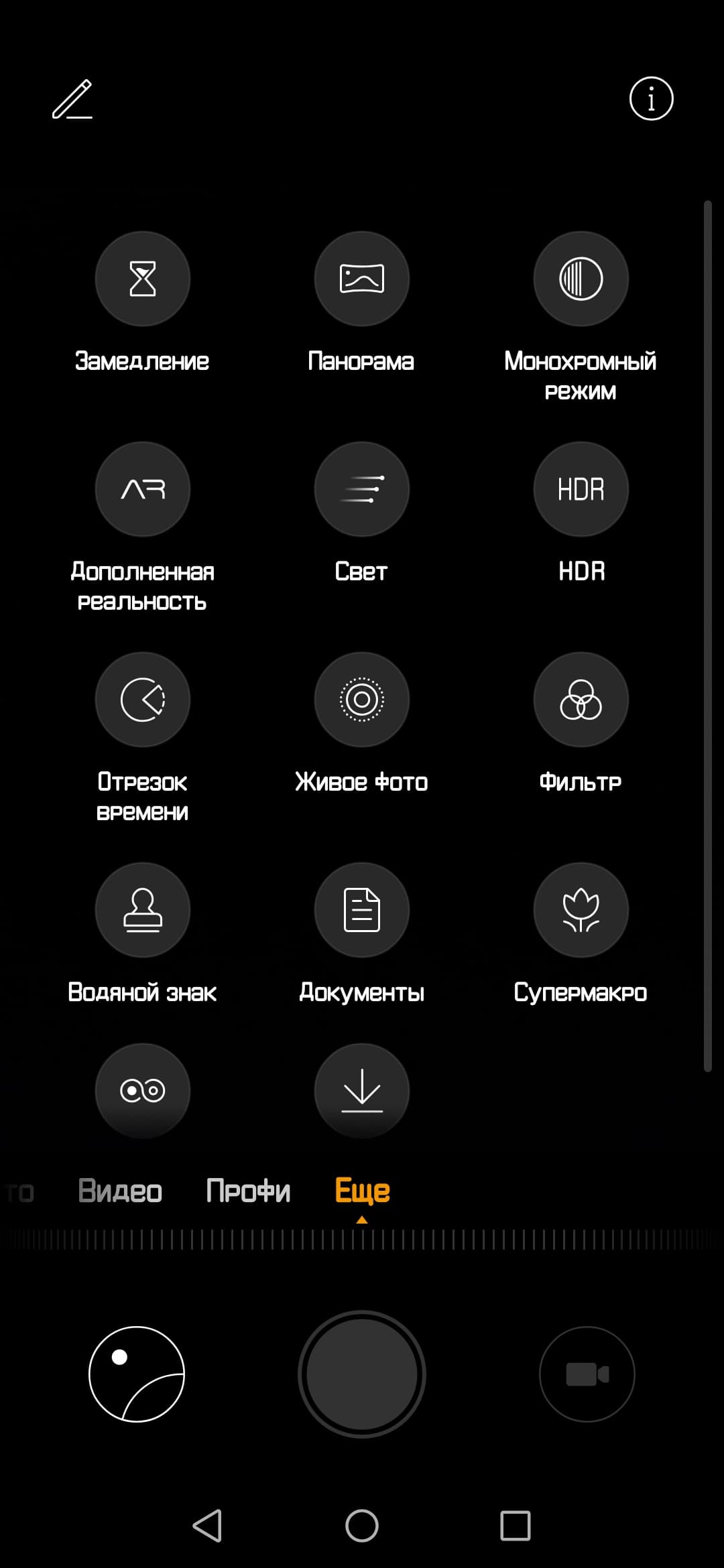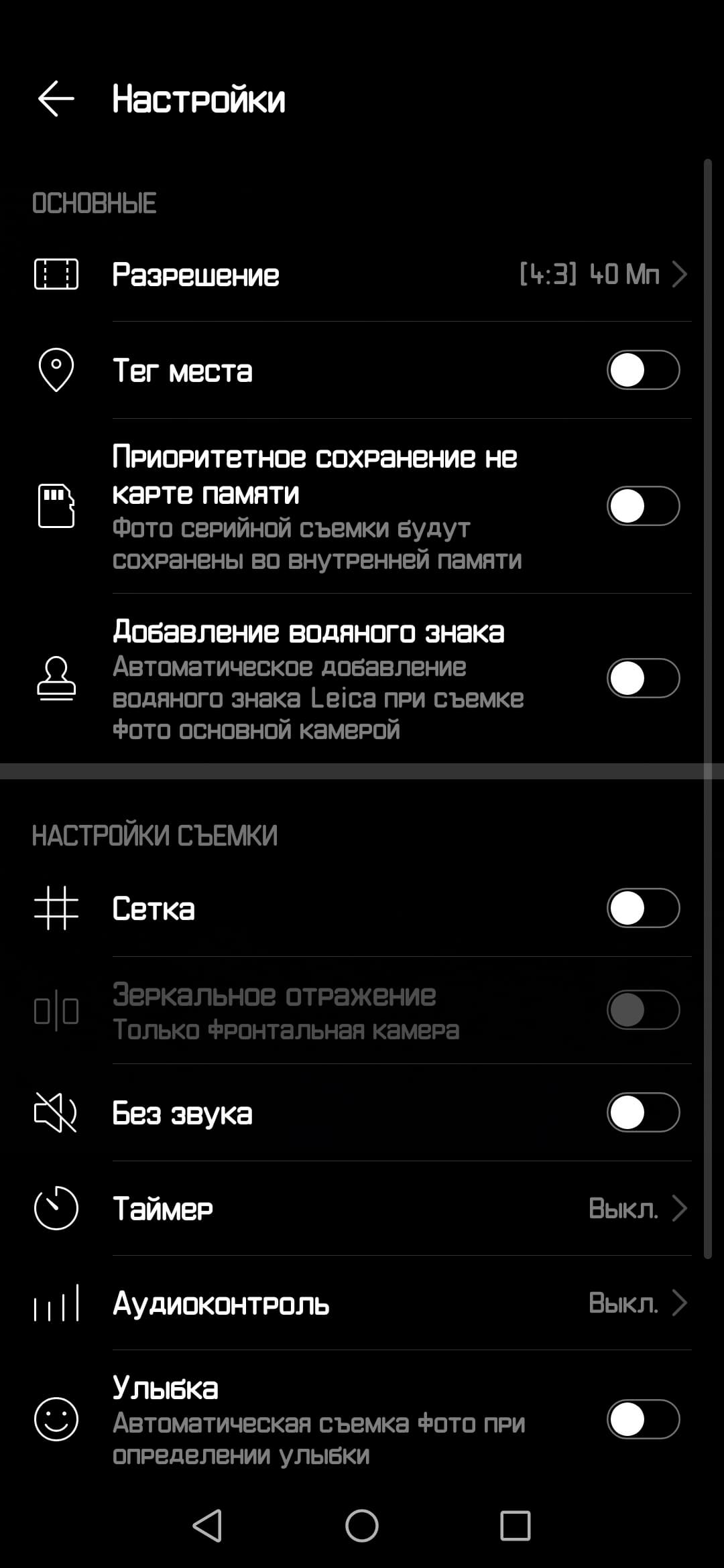 Интерфейс приложения камеры у Huawei традиционно очень богат на возможности: есть поддержка ИИ, имеется ручной режим с возможностью сохранения снимков в RAW, режим портретного размытия фона, монохромный и еще масса разнообразных сценических режимов.
